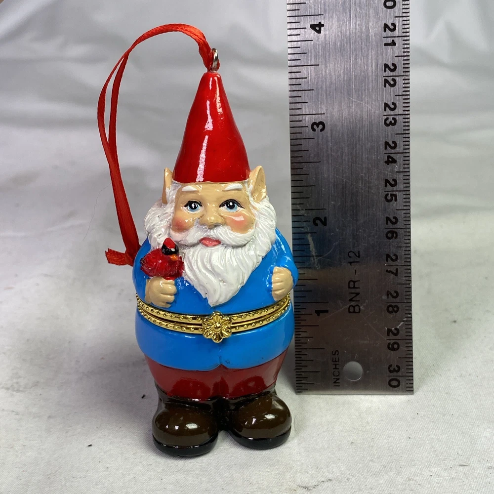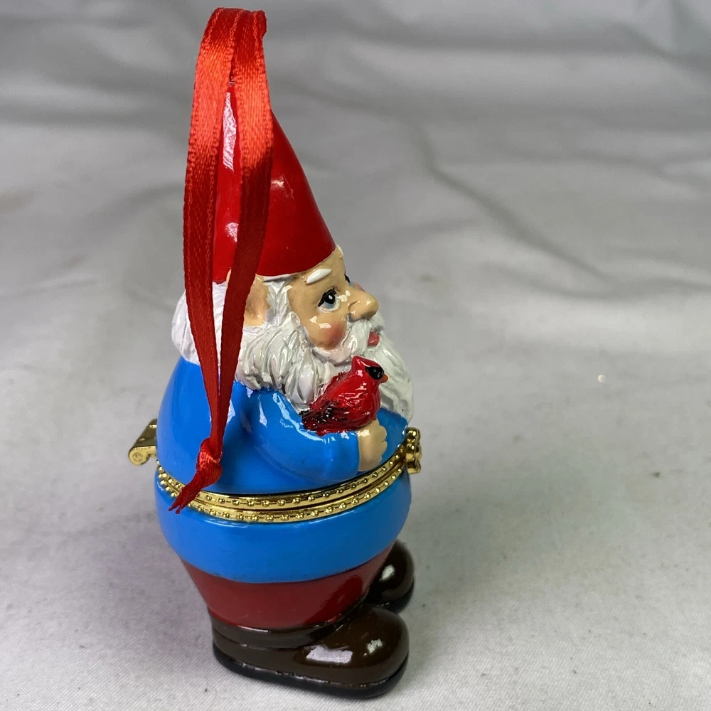 Gnome with Cardinal Trinket Holder Christmas Ornament for Small Gifts Rings Toys
