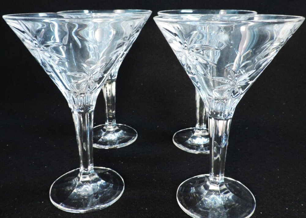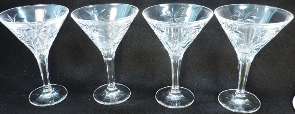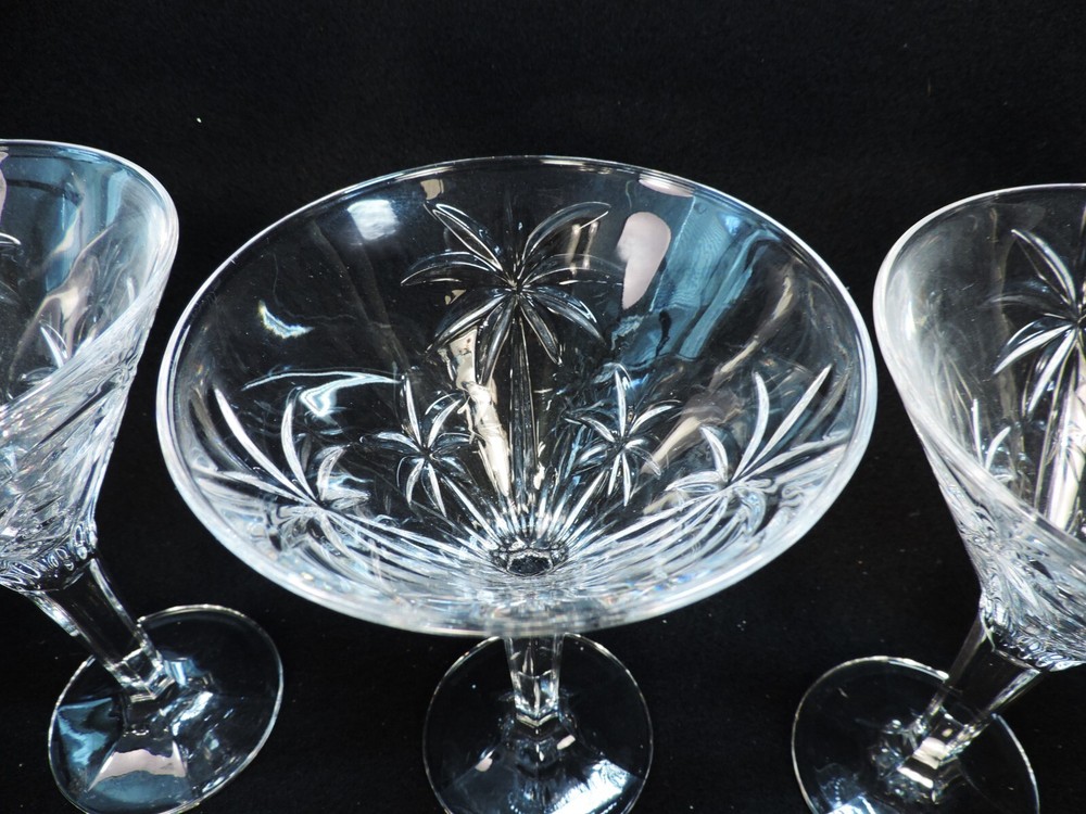BRAND: GODINGER SHANNON CRYSTAL MATERIAL: CRYSTAL PATTERN: PALM TREE ITEM: MARTINI GLASSES NUMBER IN SET: 4 SIZE: 7.25" TALL CONDITION: AS NEW SHIPPING: WEIGHT WILL BE 6 LBS. NOTE THAT I OFFER SHIPPING OPTIONS UNDER SHIPPING TAB. SELECTION MAY BE MADE UPON CHECKOUT