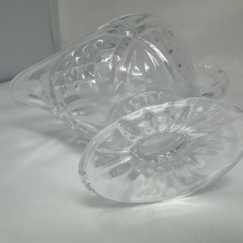 This is a peice from hostess set. I got this new from the master case and it doesn’t not have a box. If you have any concerns about this item getting to you safely please see my feedback and your concerns will disappear! The Dublin Crystal Covered Butter Dish by Godinger Shannon is a luxurious and elegant piece of dinnerware perfect for all occasions. Made of clear crystal with a glossy finish, this rectangular dish features intricate detailing and measures 7.5 inches in length. It is a stylish and practical addition to any kitchen or dining table, adding a touch of sophistication to your dining experience.