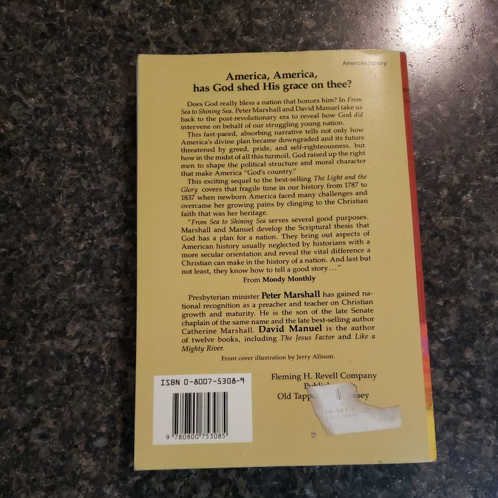 This book, titled "From Sea to Shining Sea" and authored by Peter Marshall and David Manuel, is a fascinating read that explores the history of Christianity in the United States. Published in 1989 by Revell, this trade paperback copy measures 9 inches in length, 6 inches in width, and 1.2 inches in height. It weighs 25.3 ounces and consists of 448 pages. The content of this book is a mix of religion and history, delving into the topic of Christianity in the United States. It is written in English and falls under the categories of Books & Magazines and Books. The book provides a unique and insightful perspective on God's plan for America.