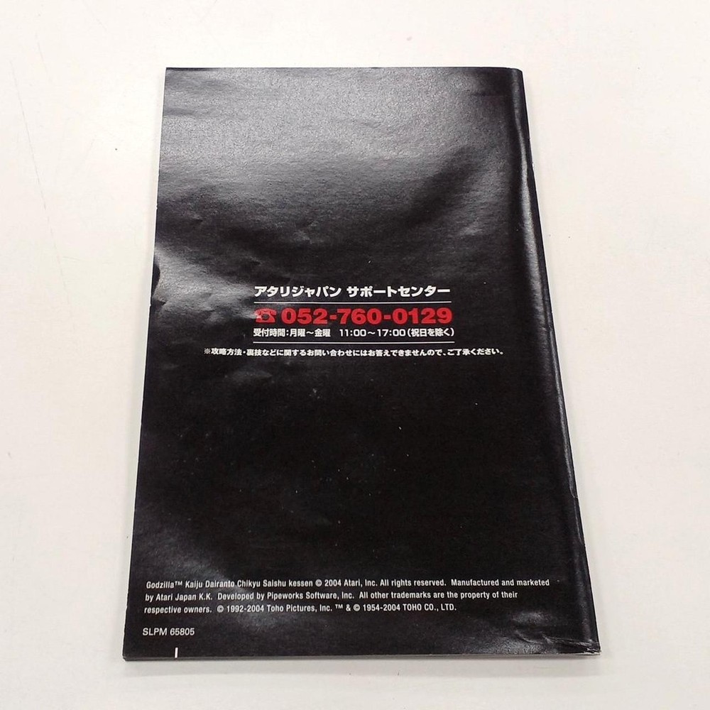 Video Game Series: Godzilla Manufacturer Warranty: NA Genre: NA Country/Region of Manufacture: NA Platform: NA Rating: NA Region Code: NA Sub-Genre: NA California Prop 65 Warning: NA Release Year: NA Features: NA gtin13: Does Not Apply Game Name: Godzilla Monster Super - Earth Battle UPC: Does Not Apply MPN: SLPM-65805 Brand: Atari Japan Publisher: Atari Japan
