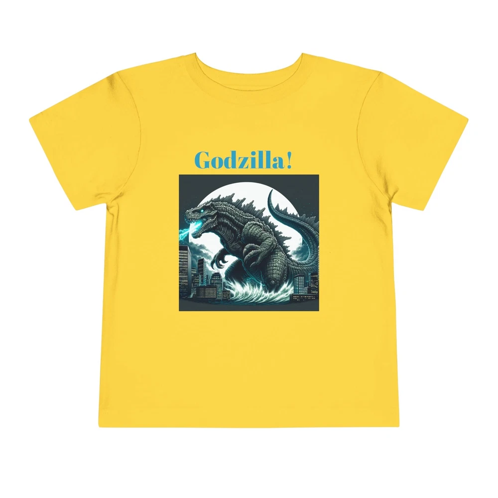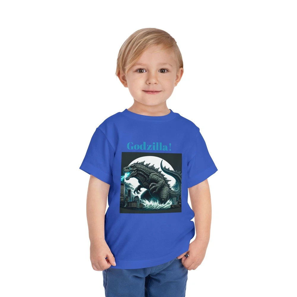 This Toddler Short Sleeve Tee brings a playful yet bold vibe that’s perfect for your little ones. Designed for comfort and style, this tee features a striking Godzilla graphic that is sure to excite fans of all ages. The light fabric makes it ideal for everyday adventures, from playdates to family outings. Perfect for birthdays or special occasions, this tee is a great gift for young monster movie enthusiasts. Celebrate holidays like Halloween or other themed events with a fun addition to their wardrobe, allowing them to express their passion for classic cinema while staying cool and comfortable. This tee is relevant for toddlers who love to express their interests in a vibrant way! Product features - Side seams enhance the structure and shape of the tee. - Made from various fiber compositions for different colors, including 100% cotton options. - Crafted from 100% airlume combed and ring-spun cotton for a soft touch. - Lightweight fabric makes it comfortable for all-day wear. - Features a convenient tear-away label for added comfort. Care instructions - Machine wash: cold (max 30C or 90F) - Do not bleach - Tumble dry: low heat - Iron, steam or dry: low heat - Do not dry clean