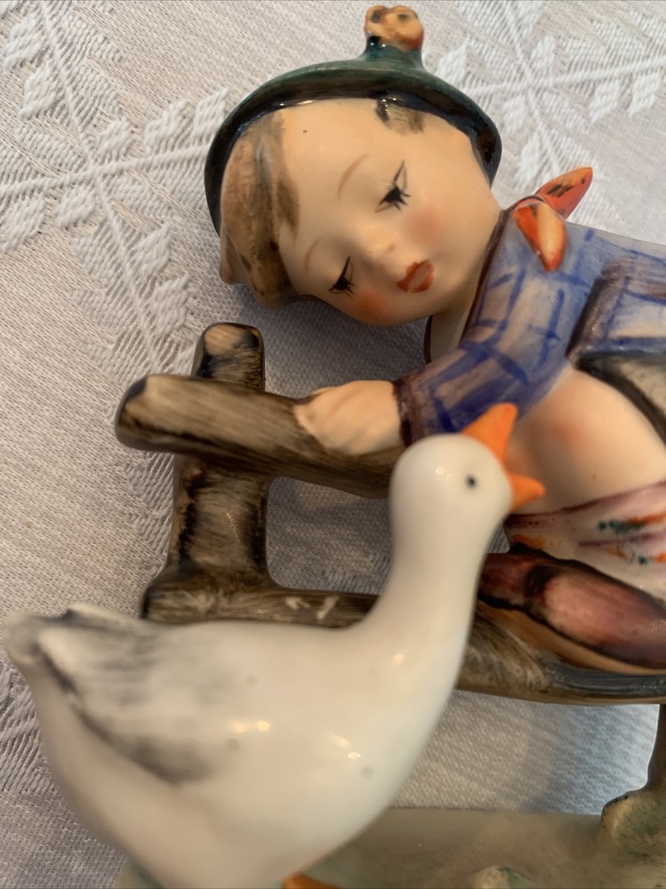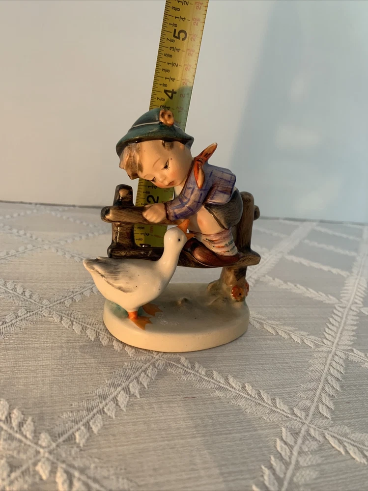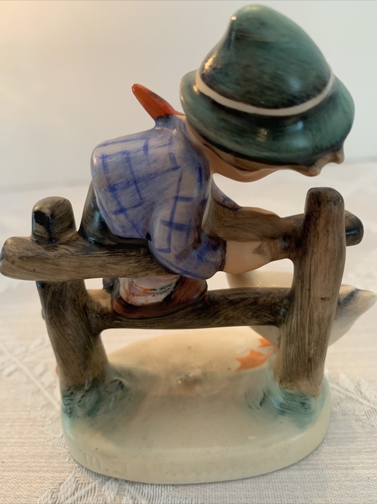 Goebel Hummel "BARNYARD HERO" Figurine #195 2/0 TMK2 FULL BEE 3.75"H Boy Fence. Classic Hummel figurine of a young boy on a fence. A vintage Hummel from the 50’s with a full bee marker’s mark. This lovely collectible is in excellent condition with no chips, cracks, or signs of crazing. Please see pictures for details. A wonderful addition to any Hummel collection! Please check out my other vintage collectibles as well!