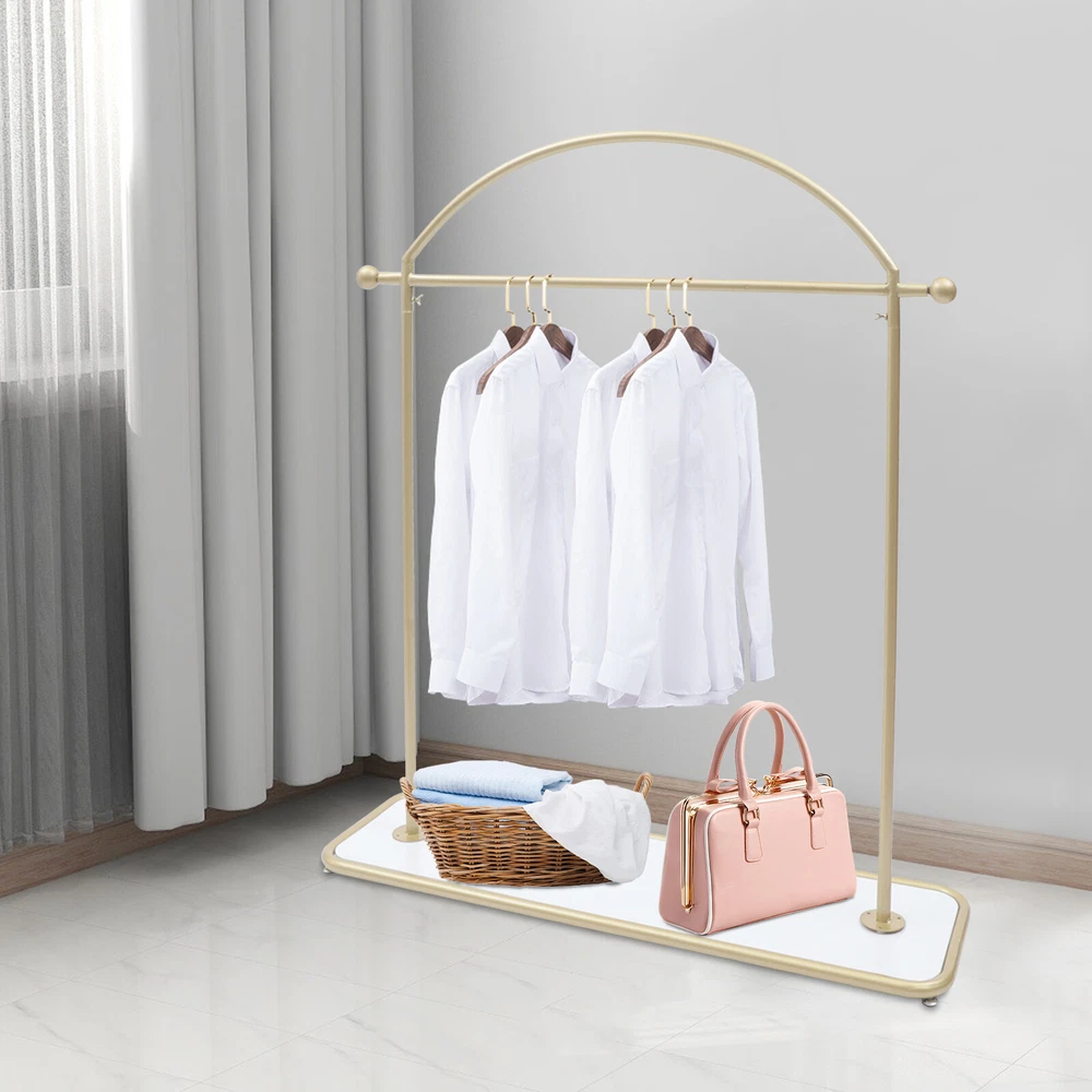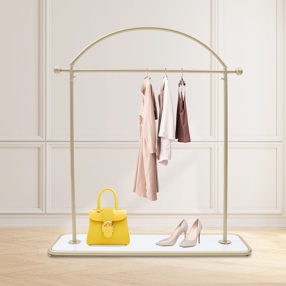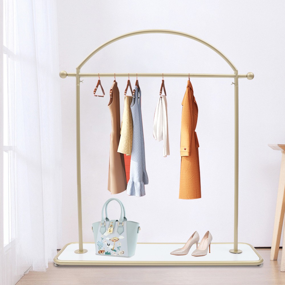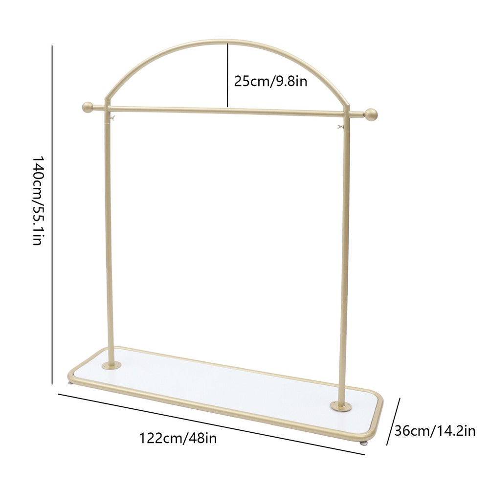 Key Features Adjustable Footbed: The footbeds are flat and smooth in shape to prevent scratching the floor. At the same time, it can be adjusted in height to keep stability on uneven floors. It can be raised by 1.5cm overall. High-quality Material: The garment rack is made of high-quality iron with thickened tube walls. The iron material is strong and not easily deformed, making the service life longer. Versatile Style: The garment rack's simple shape design and smooth lines highlight the geometric beauty, so it can be perfectly integrated into a variety of decoration styles. Space Saving: The garment rack has a 48-inch-long hanging rod, so you can hang a lot of clothes. The rack also has a shelf for shoes or folded clothes. It is a good space saver for you. WELCOME Clothing Rack Solid Wood Shelf 48" Iron Gold Modern Garment Rack w/ Solid Wood Shelf Adjustable Shelf for Hotel Description Are you still looking for a suitable garment rack? Our garment rack is made of iron , which is strong and durable. It has a solid wood shelf at the bottom , which can be used to place shoes or folded clothes, making good use of space. It can also be used to place flower pots and other decorative items to decorate the space. Its surface is treated with nano baking paint, which can be well waterproof and rust-proof , macking service life longer. Its minimalist design will be your ideal choice. Specification Material: Iron+Wood Color: Golden Packing Size: 125*10*37cm/49.2*3.9*14.5inch Product Size:122*36*140cm/48*14.2*55.1inch Bottom Shelf Size: 122*36cm/48*14.2inch Net Weight: 7.5kg/16.5lbs Gross Weight: 8kg/17.6lbs Package Included 1* Bottom Shelf 2* Support Rods 1* Curved Hanging Rod All Accessories for Use Key Features Adjustable Footbed : The footbeds are flat and smooth in shape to prevent scratching the floor. At the same time, it can be adjusted in height to keep stability on uneven floors. It can be raised by 1.5cm overall. High-quality Material : The garment rack is made of high-quality iron with thickened tube walls. The iron material is strong and not easily deformed, making the service life longer. Versatile Style: The garment rack's simple shape design and smooth lines highlight the geometric beauty, so it can be perfectly integrated into a variety of decoration styles. Easy Installation : The simple structure and industrial design make the clothing rack easy for you to install. You can do the installation by yourself independently. Convenience : The garment rack provides more space for all your seasonal clothes. It effectively prevents creases in your clothes after folding and saves you time from ironing. Space Saving : The garment rack has a 48-inch-long hanging rod , so you can hang a lot of clothes. The rack also has a shelf for shoes or folded clothes. It is a good space saver for you. Easy to Clean : The surface of the garment rack is treated with nano baking paint, making the surface flat and smooth, so it is easy to clean. You just need to wipe it with a wet rag. Excellent After-Sales Service : We aim to provide quality products and services. If you have any problems, please feel free to contact us. We will reply and solve the problem for you as soon as possible. Details Nano Baking Paint: The surface of the hanger is treated with nano baking paint, which is waterproof and wear-resistant. At the same time, it prevents the iron rod from rusting and prolongs the use time. Bottom Shelf: The bottom of this product is designed with a shelf made of solid wood , which can be used to place shoes or folded clothes to save more space for you. It can also be used to place flower pots or other decorative items to decorate the space. Application Our products can be widely used in homes, clothing stores, hotels, garment factories, and other places where there is a need to hang clothes. Notes Please allow the slight color difference caused by the shooting light and 1-3cm error due to manual measurement, and make sure you do not mind before ordering. Payment Delivery details Terms of sales About us Contact us Payment We accept ebay payment 。 Fees such as import duties, taxes are not included in the item price or shipping costs. These charges are the buyer's responsibility. Delivery details Shipping: 2-9 working days to: USA Terms of sales We maintain high standards of excellence and strive for hundred percent customer satisfaction. Feedback is very important to us. We hope that you contact us immediately before you give neutral or negative feedback, so that we can address your concerns. It is impossible to address issues if we do not know about them! About us Your satis faction is our ultimate goal. We work hard to earn your trust and future business. Our certified technicians have tested each item before shipping. The unit comes with 1 year limited warranty on all manufacturing defects. a) If you receive a defective item, you may return it or ask for a discount. Please contact us within 14 days after you receive the package. b) What you returned must be intact and in its original packaging as re? u. Customer is responsible for shipping costs of the returned item. c) We will cover the cost of shipping back t with the shipping rate indicated in the registration page. We will send you a new unit or refund the full payment you paid. Thank you. Contact us Business Hour Business Hour: Monday To Friday: 8:30 AM to 5:00 PM (Beijing China time) Due to time zones, our reply to your questions may not be immediately. But within above working time, we will reply your email within 24 hours. If it's non-workdays, please kindly be patient and wait till Monday. Please contact us with ebay message. Please feel free to contact us if you have any questions. Monday To Friday: 8:30 AM to 5:00 PM (Beijing China time) Due to time zones, our reply to your questions may not be immediately. But within above working time, we will reply your email within 24 hours. If it's non-workdays, please kindly be patient and wait till Mo