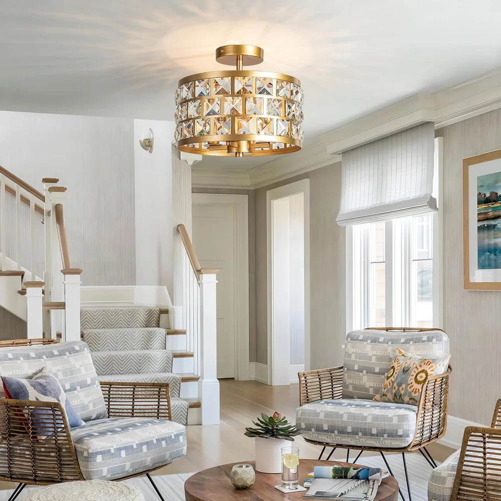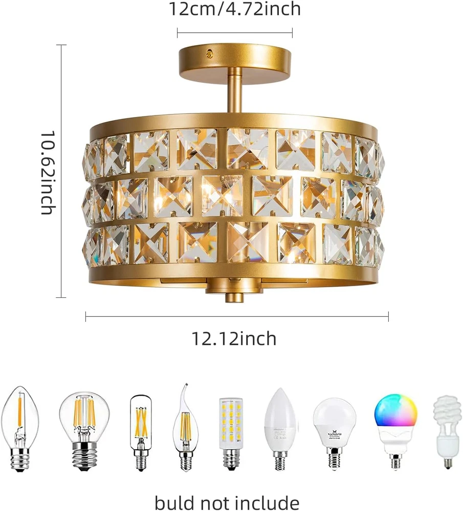 Store New Arrivals Add to Favorite View Feedback Contact Gold Crystal Ceiling Light 4 Light Semi Flush Mount Ceiling Light Modern Dining Room Light Fixture Bedroom Living Room Kitchen Hallway Light Fixture Ceiling Description Item model number 8007-4 Light Source Type Halogen Style Contemporary Number of Items 1 Power Source Corded Electric Number of Light Sources 4 Country of Origin China Warranty Type Limited Lighting Method Downlight Finish Types Painted Embellishment Feature Crystal Controller Type Push Button Unit Count 1.0 Count Room Type Kitchen, Bedroom, Living Room, Study Room, Dining Room Switch Type Push Button Specification Met ETL Product Dimensions 7.5 x 7.5 x 7.5 inches; 8.3 Pounds Material Crystal Required Assembly Yes Model Number 8007-4 Installation Type Semi Flush Mount Model Name gold crystal ceiling light Additional Features Energy Efficient, Adjustable Color Temperature, Dimmable Specific Uses For Product Indoor use only Fixture Type Non Removable Brightness 500 Lux Material Type Crystal Light Color white Water Resistance Level Not Water Resistant Light fixture form Close to Ceiling Bulb Base E12 Item Dimensions L x W x H 7.5"L x 7.5"W x 7.5"H Shade Color gold Mounting Type Ceiling Mount Color Gold Wattage 60 watts Indoor Outdoor Usage Indoor Shape Round Voltage 120 Volts Control Method Remote Shade Material Metal Included Components Mounting Hardware, Shade Style Name Contemporary Light Fixture Form Close to Ceiling 【modern farmhouse design】The frame of this gold light fixtures ceiling mount is made of durable metal, finished in glam gold, showcasing the perfection of sparkling K9 faceted crystal at its finest. Blending modern and industrial styles, this crystal ceiling light is capable to add a luxurious but unassuming touch to your house while meeting your daily lighting need. That is what we insist on, bring more to our customers, not just a ceiling light. 【Widely use】: The perfect choice for those looking for an urban city atmosphere for their house. this crystal ceiling light Suitable for a living room, bedroom, dining room, kitchen, hallway, etc. Besides, this modern gold ceiling light not only can have different applications in domestic areas but also in commercial areas like restaurants and hotels. With the colorful lights reflected from the crystals, this close to ceiling light fixtures could bring an elegant touch to any space. 【Easy installation】:All crystals are well packed, come with clear guidelines and mounting hardware.the Installation of this dining room light fixture is a breeze, thanks to its semi flush-mounted design. Simply attach it securely to the ceiling, and watch as it transforms your space into a dazzling oasis. 【Dimmable&Bulb Requirements】: this gold semi flush mount ceiling light need 4x 60W (MAX) E12 Bulb compatible with LED, Incandescent, Compact Fluorescent, Halogen bulb; If you use dimmable switches and bulbs, you can create the desired atmosphere by choosing different color temperature bulbs. (Bulb and dimmer not included) 【Shipment and Service】:We have a professional customer service team to reply You within 24 hours.If you have any questions about this bedroom ceiling light , please feel free to . you deserve the best after-sales service. Product Description 4-light semi flush mount ceiling light fixture Introducing this Drum Shaded Crystal Ceiling Light, K9 crystal meets a drum-shaded metal frame for a stylish sparkle, bringing a glamorous glow to your living space. Meticulous attention to detail makes it perfect for home lighting. Made of good material, no need to worry about rust, corrosion, or fading. This one-of-a-kind piece deserves yours. Durable for daily use The frame of this crystal ceiling light fixture is made of durable metal and gold fininsh ,Sturdy in construction and durable for daily use High quality K9 crystal This black crystal ceiling made of shiny K9 crystals, the unique multi-refractive surface throws the light around in a spectacular manner. 4*E12 bulbs requirement This crystal semi flush mount ceiling light fits 4*E12-base bulbs(not included); dimmable with a compatible dimmer switch(not included) Ceiling Light Fixture for Entryway The gold crystal semi flush mount ceiling light will adds a modern and farmhouse to your entryway. Ceiling Light Fixture for Living Room About this modern crystal ceiling light, It's a perfect decoration hanging over table in Living room. Hallway Light Fixtures Ceiling & dining room light fixture This crystal flush mount light fixtures It is perfect for your hallway and it also a good choice as a dining room light fiture Lighting fixtures are always functional – after all, they do brighten up a room – but they are also important pieces for setting up your home's ambiance. ETL listing demonstrates this product has met the minimum requirements of widely accepted product safety standards. ABOUT US We offer the best prices around on high quality products. Our E-store includes media such as books, movies, music and games while offering electronics, toys, sporting apparel, clothing, tools, general home, garden items and more. SHIPPING We are always working hard to ensure your package arrives as soon as possible. Please understand that some factors like weather, high postal traffic, and the performance of shipping companies are outside of our control. We offer free shipping to the lower 48 states and ship within 2 business days of payment, usually sooner. We do not accept P.O. Boxes. Please provide a physical address. For shipping outside of the continental USA, we only use eBay's Global Shipping Program.The item is shipped to KY and then sent to the rest of the world. International customers are responsible for all duties and taxes. Continue to check out in order to calculate costs for shipping the item to your country. Messages regarding eBay's Global Shipping Program MUST be directed at eBay EXCLUSIVELY. RETURNS We offer a 30-Day Return Policy on items which 