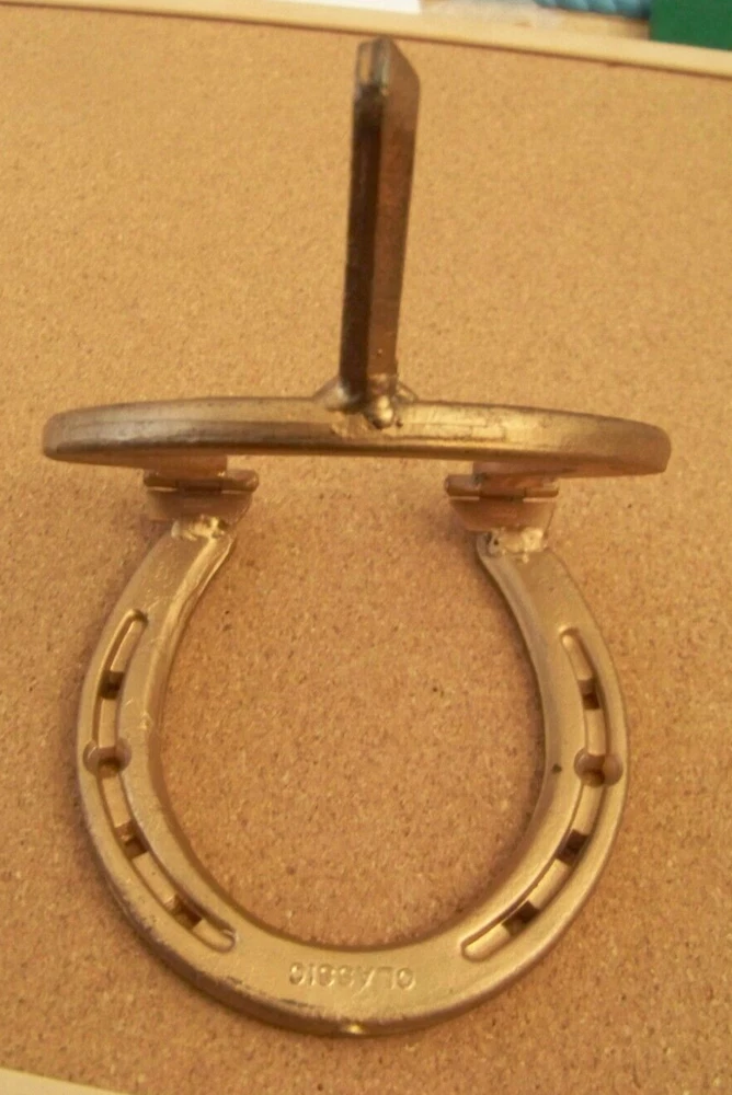 horseshoe door knocker gold color or coat hook, metal, hinged This piece measures about 7" tall on a 4.5" wide. Minor nicks and marks. Don’t forget to click on my "Stores" link, next to my eBay name, to see other items I currently have listed for sale, or you can copy and paste this address into your browser: stores.ebay.com/highcountrycollectibles SHIPPING INFORMATION Shipping to U.S. addresses is FREE! HIGH COUNTRY COLLECTIBLES Since 1989 – A LEADER IN THE DENVER SPORTS MEMORABILIA MARKET. Check out my other auctions and listings, and keep an eye out for the different, unusual, and EXCLUSIVE items available nowhere else but from High Country Collectibles.