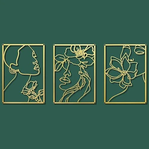 We offer Free Shipping on all order!! Wel come to my stores, The Smart of your choice and satisfaction guarantee. Gold Metal Wall Decor 3 Pieces Minimalist Abstract Wall Art Women Face with Flower Line Drawing Wall Sculptures Aesthetic Home Wall Hanging Decor for Bedroom Living Room Bathroom Gallery Product Description Features 【PACKAGE INCLUDE】: You will get 3 pieces abstract women's metal line wall art decorations in different styles, with sufficient quantities of nails and anchors. Diverse styles add more elegance to your home decor, putting them together or separately is alright. 【 SIZE】: The size of each metal wall art accent is 42*30 cm/ 16.5 x 11.8 inches, suitable for hanging on walls, doors and windows to make your home colorful and vital. 【MATERIAL】FULL REAL METAL. Hard in workmanship, smooth in polishing, and won't easily scratch your hand, rust or break, and can be safely applied for your room decoration. 【Easy to Hang】: The modern wall art drawing is designed 4 holes for installation, so you can fix the metal wall art with nails and anchors or ropes, convenient for you to install and disassemble. They can be applied for indoor or outdoor decoration. 【A NICE GIFT】: Great modern decor for your bedroom, living room, bathroom, kitchen and entrance walls, also it works for office. Can be widely applied to any color walls. Therefore, it's a Great gift for housewarming, thanksgiving, mother's day, Christmas, or any important days. Thank you for your business, your trust and your confidence. It is our pleasure to work with our customers. Delivery ☎ If you have any question. Please do not hesitate to contact us. Please send us message via eBay system. We reply every message within 24 hours. If you did not receive our reply. We think maybe we did not receive your message. Please send us message again. Payment Policy ❤ Payment managed by eBay. Shipping Policy We only send the item according to the address on Ebay, the address can't be changed once we pack the item. Please double check your shipping address it before your send the payment. It should take 3-5 business days for the product to reach your destination. If the product doesn't reach your destination within the time limit, please give it an additional 1-2 business days in case of postal delays and/or possible technical issues. We use a selection of shipping services such as UPS, FedEx, USPS etc. We ship only to the 48 contiguous states of America. We do not ship to Hawaii, Alaska, US Protectorates, APO/FPO addresses and PO Boxes. Local pickups are not offered. If it takes any longer than that, please do not hesitate to contact us to resolve the issues. Feedback ❤ We take our reputation seriously, we buy and sell online, so we understand the value of trust. If you are unsatisfied with your order, please contact us and we will work with you to resolve it to your satisfaction. Return Policy - This product comes with 30-Days Money Back Guarantee. - If you receive an item and it doesn't work properly or you don't like it because of any reason at all. - We have a 100% refund/return policy. We will ship you a new item or refund your money for the full sale amount. - For all returned products, buyers MUST contact us for the returning address.