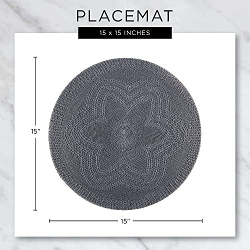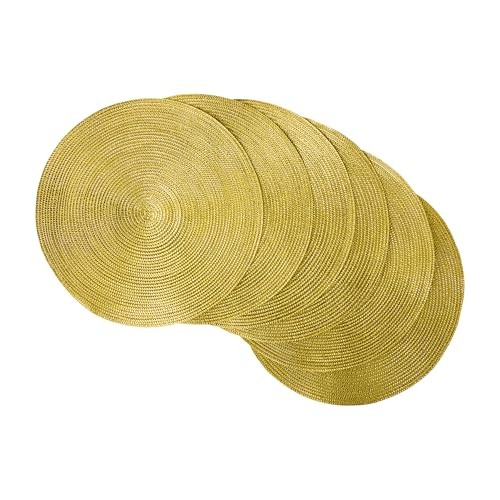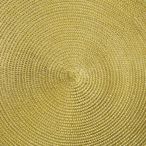 Gold Round Woven Placemat Set Metallic Dining Table Decor 15 Inch 6 Piece