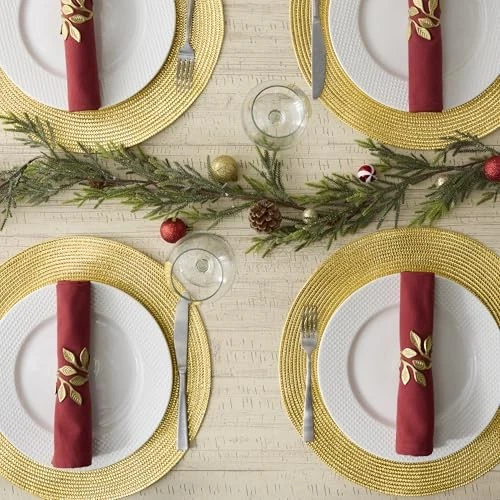 Global Trade Identification Number: 00738215327963 Material: Polypropylene Shape: Round Country of Origin: China Batteries required: No Is Discontinued By Manufacturer: No Color: Gold MPN: Does Not Apply EAN: Does Not Apply Assembly required: No Item Height: 1 Fabric Type: 100% Polyethylene Item Weight: 13.8 ounces gtin13: Does Not Apply Product Dimensions: 15"L x 15"W Import: Made in USA or Imported Type: Does Not Apply Item model number: 5448 Occasion: Christmas Brand: Does Not Apply Customer Reviews: 4.3 out of 5 stars Number of Pieces: 6 Product Care Instructions: Wipe with damp cloth. Item Width: 1 Included Components: Placemat Item Length: 1 Manufacturer: Does Not Apply UPC: 738215327963 Size: 15"