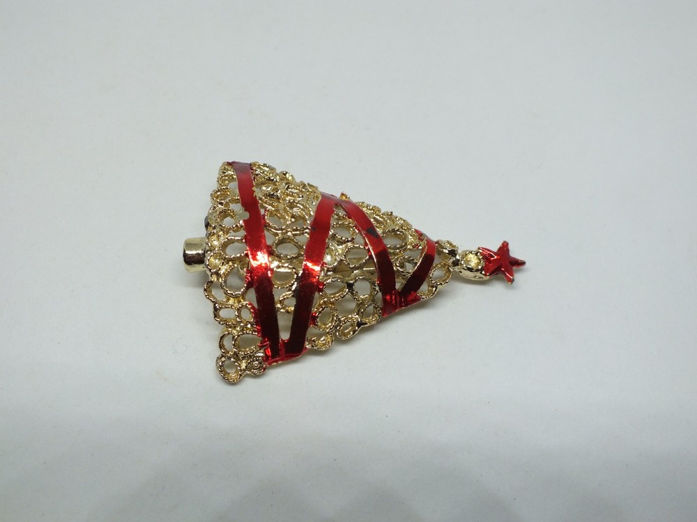 For your consideration is a beautiful brooch or pin done in a gold tone adorned with red enamel in the shape of a Christmas tree measuring 2 x 1 1/2 inches in size. Great addition to your holiday jewelry wardrobe. Very good gently used condition. Comes with a gift box. Picture does not do justice. Thanks for looking! FREE shipping to the United States. Discounted shipping rates for international buyers purchasing multiple items. KEEP watching-I am always adding linens and have hundreds of pieces of jewelry I am trying to get listed.