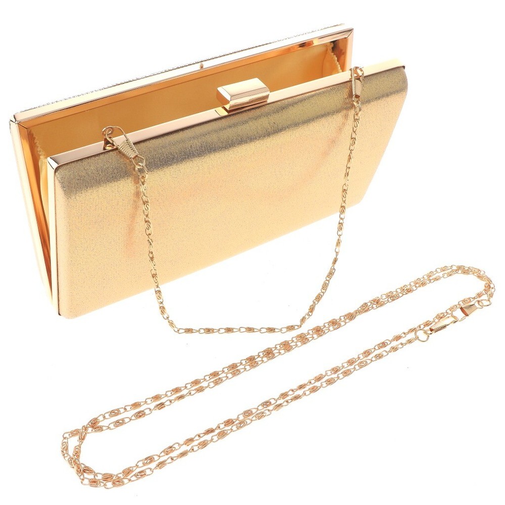 Gold Tone Metal Frame Rhinestone Evening Bag / Chain strap Included / Size: 8.75"L x 4.5"H x 1.75"W / Color: Gold Condition: Brand New SKU: TLX036-GLD Color: Gold Design: All orders will ship from USA via UPS or USPS. We expect all local orders will receive the items within 7 business days or less depend the location. Worry free international shipment delay or custom duty fee.