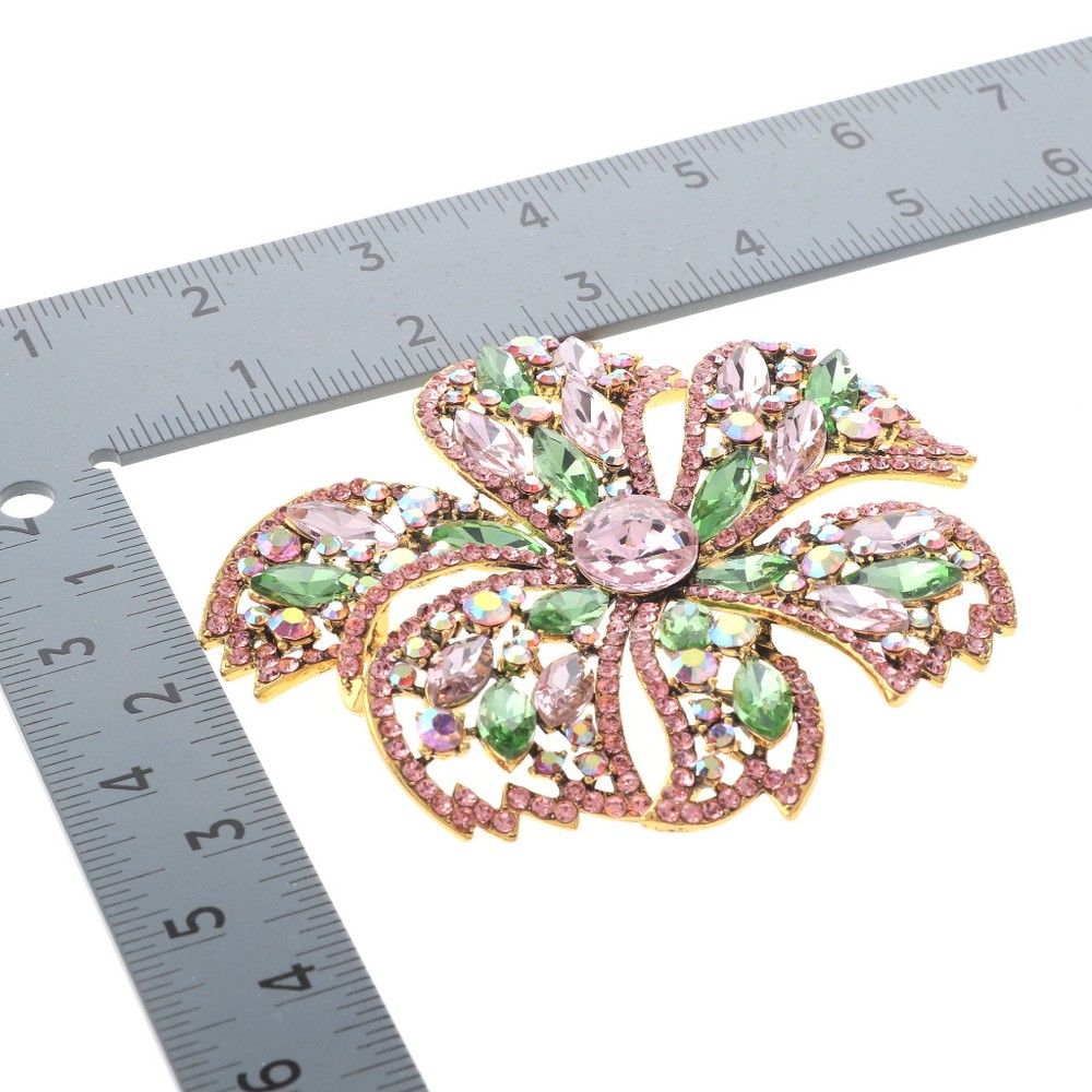Gold Tone Metal Large Crystal Flower Brooch / Approximate Size: 4" L x 4" W / Rhinestone / Metal / Lead & Nickel Compliant / Color: Gold & Pink, Green Condition: Brand New SKU: P1536-PNG Color: Pink Design: Flowers & Plants All orders will ship from USA via UPS or USPS. We expect all local orders will receive the items within 7 business days or less depend the location. Worry free international shipment delay or custom duty fee.