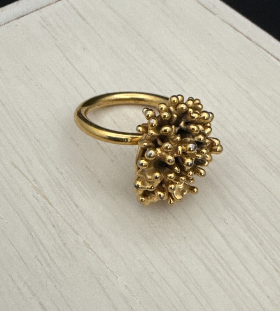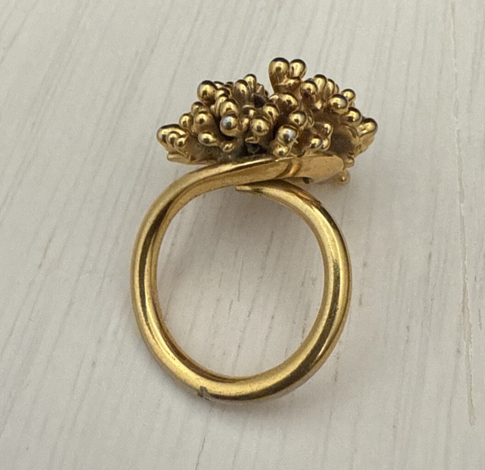 Gold Tone Spiky Cocktail Ring Size 5.25 Bold Statement Jewelry