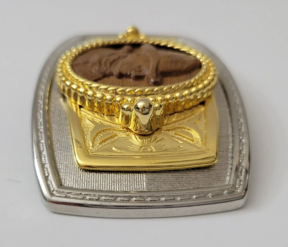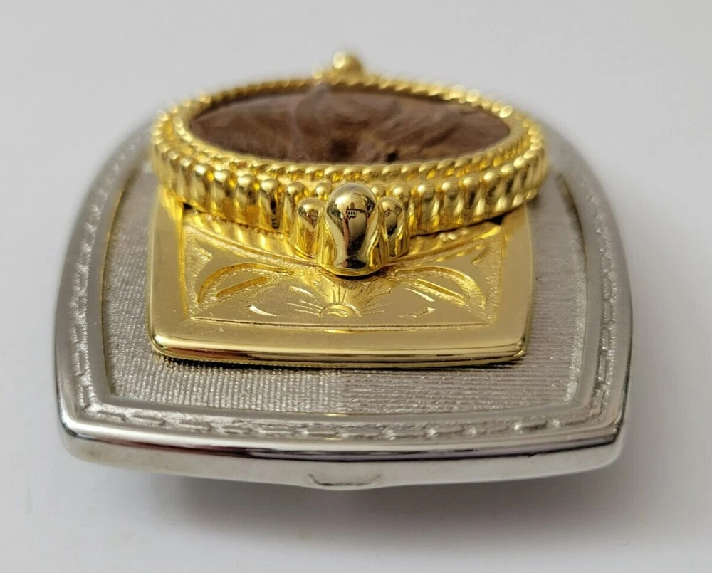 Theme: Cowboy Color: Silver & Gold Type: Belt Buckle Style: Western Buckle Brand: Portrait Accents: Wooden Portrait Seller Notes: “Very Good - Metals Untested” Department: Men Material: Metal