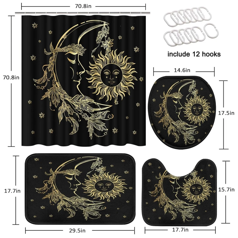 Pattern design: the design that makes people fall in love at first sight, full of creative unique pattern. Waterproof material: the shower curtain is made of 100% polyester material, with good waterproof effect, super soft and close to the skin, easy to hang and not fade. Non slip Bathroom Mat: The back of the bathroom is made of high quality flannelette, which is made of non slip particles. When used in the bathroom, it is very effective and non slip, which can help you enjoy a pleasant bath time. Advanced technology: high definition digital printing, clear and bright color design will illuminate your bathroom! Easy to install: we offer our customers 12 hooks free of charge to ensure that everyone can easily install the shower curtain. Dimension information: Shower curtain size: 72"Lx72" W Bathroom mat size: 29.5"Lx 17.7"W O-shaped toilet cover: 17.5 "L x 14.6 "W U carpet: 17.7"L x 15.8" W Cleaning conditions: machine washable, cold water washing, washing separately and hanging to dry, ironing at low temperature is better, do not bleach. Set includes: 1 x shower curtain, 12xplastic hook 1 x bathroom mat, 1 x toilet cover, 1 x U-shaped carpet [Premium Bathroom Accessories]: Our shower curtain is made of high-quality polyester fabric, ensuring excellent waterproof performance. The anti-slip bathroom rugs and mats set feature soft, comfortable polyurethane memory foam filling, and a cozy coral velvet microfiber outer material that's skin-friendly, relieving pressure and fatigue on your feet. The non-slip shower carpets and bath rugs are equipped with PVC dots on the bottom to prevent shifting and skidding, ensuring your safety. [The Shower Curtain Set Includes]: The waterproof shower curtain measures 72"L x 72"W, while the plush bathroom mat is 29.5"L x 17.7" W. The set also includes an o-toilet cover (17.5"L x 14.6"W) and a U-shaped rug (17.7"L x 15.7"W), all designed to fit most standard-sized bathrooms. [Effortless Installation]: Our bathroom set comes with 12 complimentary, sturdy hooks, making installation a breeze. The shower curtain features 12 reinforced grommets for easy hanging, while the non-slip bath mat and toilet lid cover ensure safety and comfort. [Elevate Your Bathroom Decor]: Thanks to the yellow abstract stylish shower curtain by you can create a relaxing & harmonious bathing atmosphere, while also adding an eye-catching decor piece to your bathroom interior. This stylish 4-piece bathroom set is perfect for your home, motel, hotel, or dormitory.Happy bath times ahead! [Absolutely Easy Care]: For all-time relaxing moments at home! Fully unwind during a lovely bath or shower and enjoy your peace of mind knowing that the Bathroom Sets with Shower Curtain and Rugs are conveniently machine washable in cold water - time-saving and hassle-free, what’s not to love?