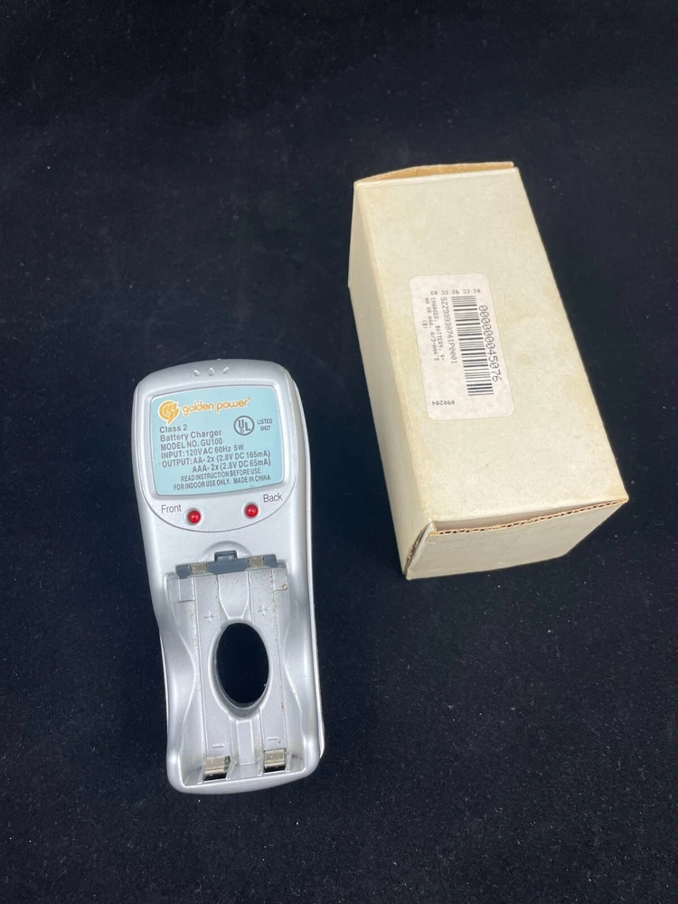 This Golden Power Class 2 AA or AAA Rechargeable Battery Charger is a reliable and efficient way to charge your batteries. It is compatible with both AA and AAA batteries and has a voltage input of 120V AC 60Hz 5W. The charger is designed for multipurpose batteries and power and is perfect for use with consumer electronics. With this charger, you can easily charge your batteries and keep your devices running smoothly. It is a great addition to any battery charger collection and is sure to be a valuable resource. Don't miss out on this opportunity to power up your devices with ease! For inventory - Mary Box