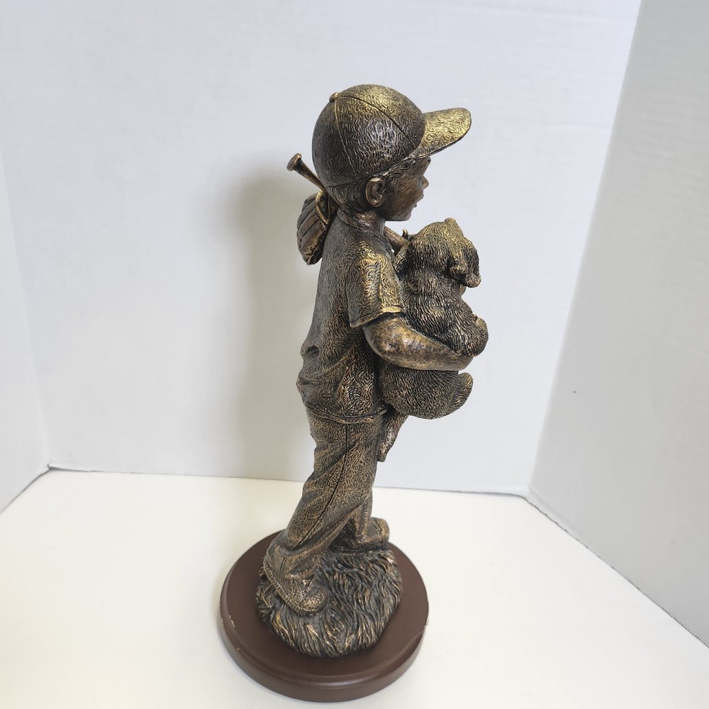 Goldtone 7X16" Double Play Basedball Player Boy & Dog Art Sculpture Figurine . Condition is Used. Shipped with USPS Ground Advantage.