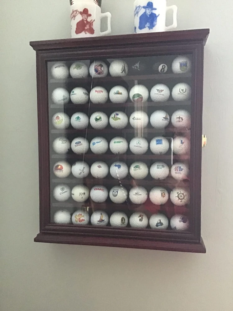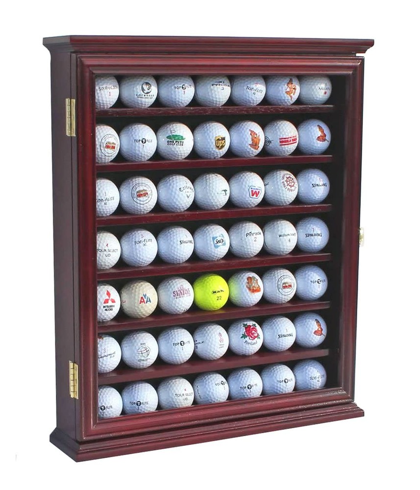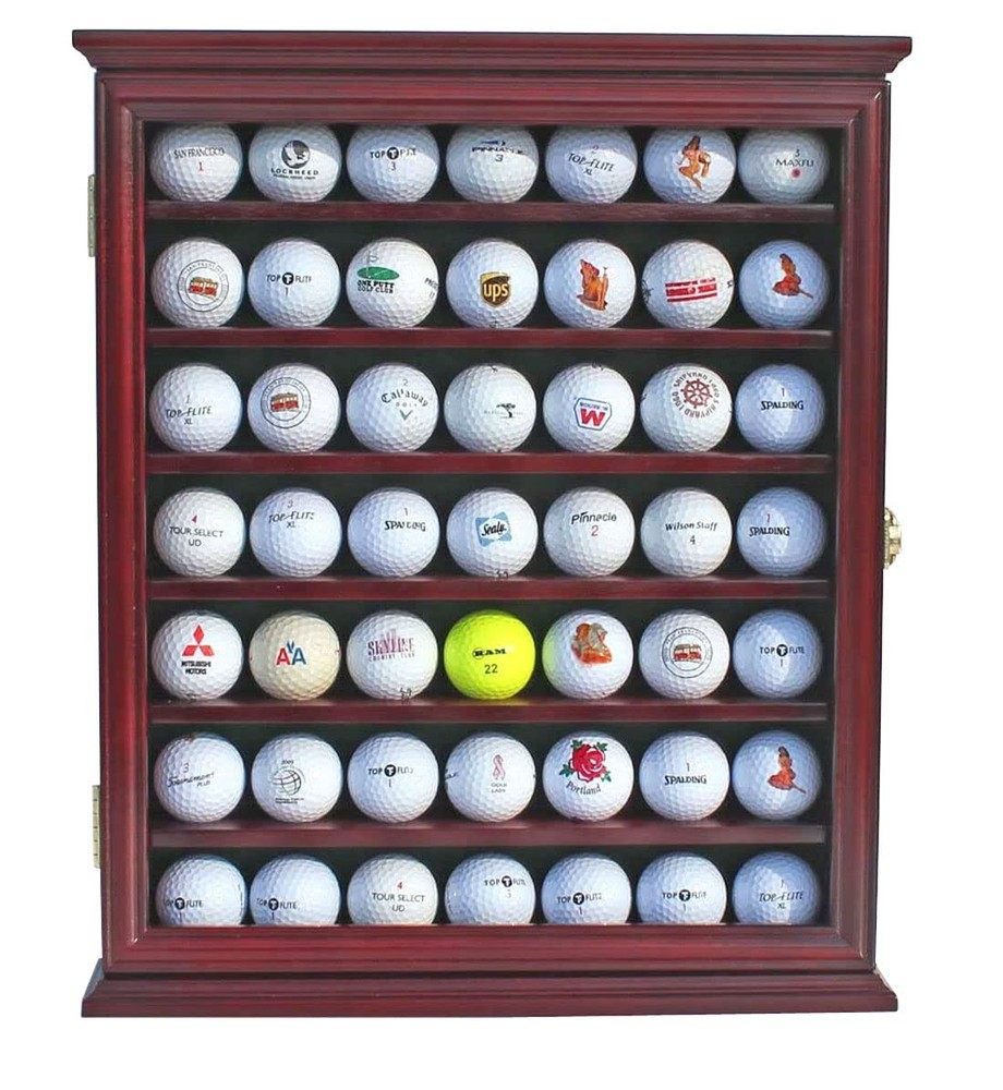 49 Golf Ball Display Case Cabinet Wall Rack Holder 16.5" H X 15.7" W Frame with Lockable Door, Wall Mounted or Stand a Counter Top Cherry Finish Great Golfer's Gift Cherry Finish, Dark green felt interior. Dimensions: 17"H X 14.5"W X 2.75"D Indentations on shelves to prevent balls from rolling Golf Balls NOT INCLUDED. No assembly required, comes in one piece. 17"H X 14.5"W X 2.75"D Quality solid wood golf ball display case with a outer size 16.5"H X 15.7"W X 3"D. Golf ball holder has the lockable acrylic door with gold plated anti-theft locks to prevent dust and prevent curious fingers. This golf ball cabinet can display 49pcs golf balls. Note: Golf Balls Not Included. Golf ball display rack has 7 racks holding 49 golf balls on which have indentation on each shelf to prevent golf balls from rolling. Elegant golf ball cabinet for holding souvenir and trophy balls from tournaments, events, games and courses you have golfed at. Golf ball case is finished with green color lining like velvet felt which make it as a high-end home decor. Can be wall mounted with wall hooks already provided or you can stand this on a book shelf or desk. Guarantee quality is as good as appears on picture if not better. Crafted by our craftsmen with years of experience specialized in making display cases and memorabilia storage boxes for souvenir golf balls, golf clubs, and golf bags, and golf gears . This is be a great add on to any home or office display. This would make an awesome give for any golf Enthusiast for Father’s day gift or Christmas Gift. Come in one piece. No assembly required. Shipping We offer FREE shipping on all orders! We ship within Three business days of payment, usually sooner. We use a selection of shipping services such as UPS, FedEx, USPS etc. We only ship to the lower 48 states, no APO/FPO addresses or PO Boxes allowed. Local pickups and combined shipping options are not provided at this time. Return You can return a product for up to 30 days from the date you purchased it. Any product you return must be in the same condition you received it and in the original packaging. Please keep the receipt. Payment We accept payment by any of the following methods: PayPal Please pay as soon as possible after winning an auction, as that will allow us to post your item to you sooner! Feedback Customer satisfaction is very important to us. If you have any problem with your order, please contact us and we will do our best to make you satisfied. Contact Us If you have any queries, please contact us via ebay. We usually respond within 24 hours on weekdays. Please visit our eBay store to check out other items for sale! Thank you for shopping at our store.