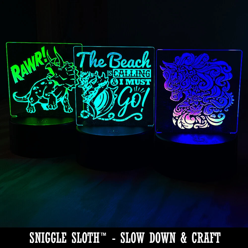 Sleep tight with this small, adorable LED sign / night light. It adds character to any nightstand, desk, bookcase and more. It also makes a great gift or decoration for celebrations. Color and light display can be controlled at the base or with the included remote. Choose from many fun colors and display modes, including single color display or different options for rotating through all the colors. The acrylic is 3.25 inches x 3.25 inches and the base is 3.25 inches by 1.5 inches. It's the perfect size for small spaces. Works with the included USB cable or three AA batteries to best work in your space. Batteries and USB wall charger are not included. Acrylic signs are engraved and thoughtfully packaged in our California Sniggle Sloth facility.