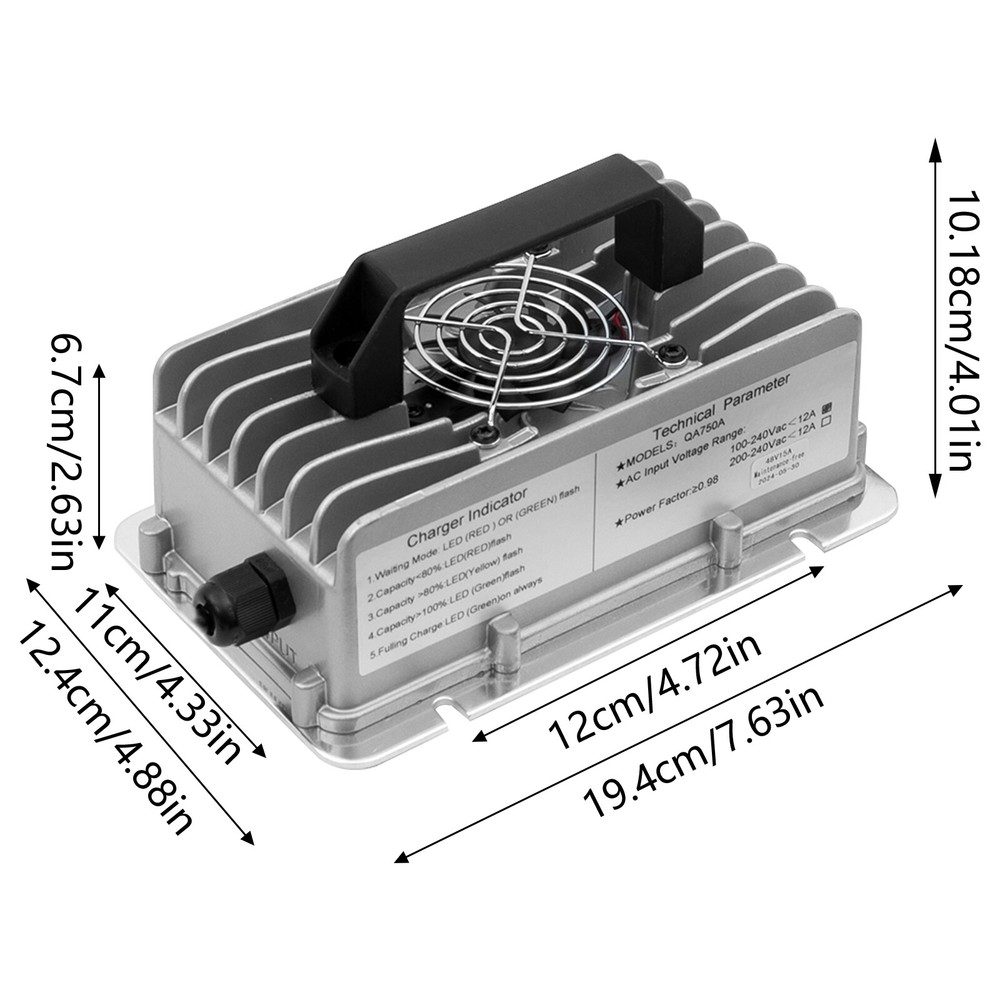 Golf Cart Battery Charger Car Golf Cart Smart Charger Golf Cart Battery Charger Description This golf cart charger will provide an excellent solution to the charging needs of lead-acid batteries. It adopts advanced electronic technology designed to optimize the charging performance of lead-acid batteries, which not only ensures the high efficiency and stability of energy transmission but also takes into account the careful care of the battery and extends its service life. Key Features Sturdy and Durable: The item is made of aluminum alloy and plastic with a painting treatment, making it resistant to deformation, oxidation, corrosion, rust, and high temperature. So it can remain practical and beautiful without frequent replacement. Three-Stage Charging: It adopts a three-stage charging mode - constant current, constant voltage, trickle (or floating charge), which can accurately control the current and output voltage of the charger according to the battery condition, thus protecting your battery . Powerful Function: It adopts a pure copper high-frequency transformer and the maximum output power can be up to 750W, which has the advantages of safety, large capacity, stable output voltage, etc. It can provide excellent charging performance and efficiency. High Safety: It has IP65 waterproof rating, battery protection, over-voltage protection, reverse connection protection, over-heating protection, short-circuit protection, current limiting protection, and built-in fan cooling to ensure stable operation and safe use of the product. Compact and Lightweight: With its compact size(7.64*4.87*4.01 inches) and light weight(3.97 lbs), you can easily take it with you or store it in the trunk of your car without taking up too much space. Ideal Gift: Thanks to its practicality and powerful functions, you can give it to your friends as a Christmas, Thanksgiving or housewarming gift. Protective Package: We have used sponge wrapping for this product, designed to minimize damage to the product during shipping. Customer Service: We aim to provide quality products and services. If you have any problems, please feel free to contact us. We will reply and solve the problem for you as soon as possible. Details Portable Handle: The handle on the top makes it easy to carry the product. Long Power Cable: The 3.94ft long power cable can facilitate your use and enhance the safety of use. Application It can be used for electric wheelchairs, elderly mobility scooters, electric golf carts, golf carts, electric floor scrubbers, electric sweepers, aerial work platforms, electric forklifts, portable energy storage, autonomous mobile robots, ground support equipment, vehicle back-up batteries, unmanned aerial vehicles, electric yachts, portable traffic signals and more! Charger Indicator 1. Waiting Mode: LED (RED ) OR (GREEN) flash. 2. Capacity<80%: LED(RED)flash. 3. Capacity >80%: LED(Yellow) flash. 4. Capacity> 100%: LED (Green)flash. 5. Fulling Charge: LED (Green)on always. Specifications Material: Aluminum Alloy and Plastic Process: Painting Color: Silver Model: QA750A Power Source: Corded Plug: US Standard Shape: Rectangular Output Volatge: Lead-acid 48V AMP: 15A Output Current: 15A±5% Battery Specifications: Lead-acid Battery Max.Output Power: 750W AC Input Voltage Range: 100-240Vac<12A Power Factor: ≥0.98 Waterproof Grade: IP65 Power Cord Length: 1.2m/3.94ft Packing Size: 26*19*13cm/10.24*7.48*5.12in Product Size: 19.4*12.36*10.18cm/ 7.64*4.87*4.01 in Gross Weight: 2kg/4.4lbs Net Weight: 1.8kg/3.97lbs Package Included 1* Golf Cart Charger 1* Power Cable 1* OBC Adapter Cable 1* English Manual Note Please verify that the connector in the picture matches the receptacle on your golf cart. Please pay attention to the adaptability of the charger, keep it away from explosive gases and flammable materials, and pay attention to the protection against moisture, humidity and shock. Please read the English manual carefully before use and pay particular attention to the safety instructions contained therein. Please allow the slight color difference caused by the shooting l ight and 1-3cm error due to manual measurement, and make sure you do not mind before you order. Payment Delivery details Terms of sales About us Contact us Payment We accept ebay payment 。 Fees such as import duties, taxes are not included in the item price or shipping costs. These charges are the buyer's responsibility. Delivery details Shipping: 2-9 working days to: USA Terms of sales We maintain high standards of excellence and strive for hundred percent customer satisfaction. Feedback is very important to us. We hope that you contact us immediately before you give neutral or negative feedback, so that we can address your concerns. It is impossible to address issues if we do not know about them! About us Your satis faction is our ultimate goal. We work hard to earn your trust and future business. Our certified technicians have tested each item before shipping. The unit comes with 1 year limited warranty on all manufacturing defects. a) If you receive a defective item, you may return it or ask for a discount. Please contact us within 14 days after you receive the package. b) What you returned must be intact and in its original packaging as re? u. Customer is responsible for shipping costs of the returned item. c) We will cover the cost of shipping back t with the shipping rate indicated in the registration page. We will send you a new unit or refund the full payment you paid. Thank you. Contact us Business Hour Business Hour: Monday To Friday: 8:30 AM to 5:00 PM (Beijing China time) Due to time zones, our reply to your questions may not be immediately. But within above working time, we will reply your email within 24 hours. If it's non-workdays, please kindly be patient and wait till Monday. Please contact us with ebay message. Please feel free to contact us if you have any questions. Monday To Friday: 8:30 AM to 5:00 PM (Beijing China time) Due to time z