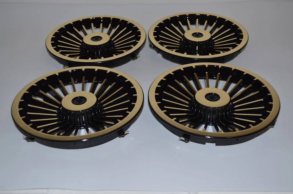 Golf Cart EZGO Yamaha Club Car 8" Turbine Black Gold Wheel Cover Hub Cap | Set 4 - SKU: 4648-4 Description: One of the easiest, most affordable ways to spice up your cart's appearance. Add a slick visual appeal to most 8 inch golf cart steel wheels. Features: Brand New 8" Black / Gold Turbine Wheel Cover - Includes (4) covers High Quality Finish Cover easily snaps into place Manufacture: NIVEL Model Number: 4648 (QTY 4) UPC: Condition: New Surface Finish: BLACK | GOLD Options 1: Includes 4 Covers Options 2: N/A Options 3: N/A Special Notes: These covers are specifically designed for Golf Cart Steel Wheels only, Will not work on trailers, mowers etc.. Instructions: N/A Fitment: Most golf carts with 8" steel wheels. (Designed specifically for golf cart wheels, will not work on trailer wheels, mower wheels, etc.) International Buyers – Please Note: Import duties, taxes and charges are not included in the item price or shipping charges and will be charged at the time of delivery (COD). These charges are the buyer's responsibility. Please check with your country's customs office to determine what these additional costs will be prior to bidding/buying. At Advantage Distributing all items are in stock and available at the time of listing. We ship from multiple warehouses located across the United States providing timely delivery. We do also offer our products through many outlets, so occasionally an item may not be on hand at the time of purchase. In this instance, we will notify you with the estimated delivery time - with the option to cancel your purchase and receive a full refund. Our fulfillment rate is 99.9%. If you have any questions regarding stock status, product information or fitment - please contact us.