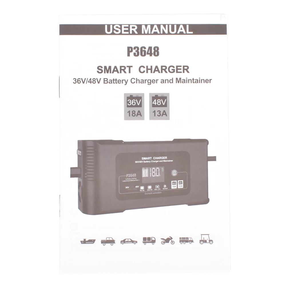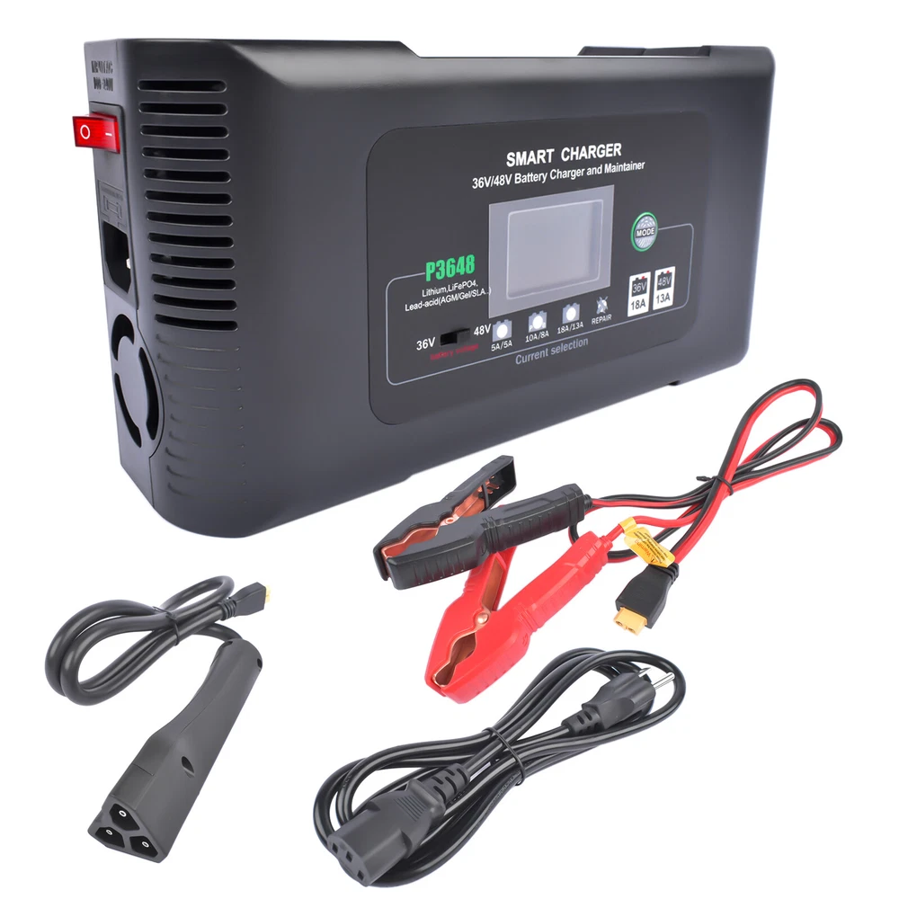 Details 36/48V Battery Charger AC input :100v-240v~ 50/60 hz. Output current :36V18A & 48V13A . Output voltage :36V / 48V. (normal - Max:40V-43.8V / 54V-58.4V). for 3-Pin"Triangle" style plug ,EZGO RXV & TXT Golf Carts. Lithium /LiFePO4/ lead acid (AGM,GEL,EFB, MF, Flooded, VRLA, SLA and wet battery..)battery charger. Support ah: 20AH-400AH...can have more capacity, the larger the capacity needs longer charging time. Minimum starting voltage> 26V. Power and load :MAX; 650 W. Note : 1:Only charge the lithium battery with battery protection board(BMS). 2:Charge the battery below 20AH with the minimum current Shipping Policy Payment Method Returns Policy Shipping Policy -Please leave us your full name, your telephone number and detailed address when ordering. -We ship to your eBay or Paypal address. Please make sure your eBay and Paypal address is correct before you pay the order. -We try our best to pack the products as good and safe as possible ,so they always arrive in a good condition. Payment Method -We accept PayPal only. -All major credit cards are accepted through secure payment processor PayPal. -Payment must be received within 4 business days of auction closing. Returns Policy -We offer sophisticated products at a high technological level, with the highest possible quality and the most favorable price. -With these parts you can replace your defective parts simply plug and play. -Our warranty is valid for max. 24 months without mileage limitation. -Please compare carefully with Photos or OE number before purchasing the part. -Once a problem occurs with the purchased product, please do not hesitate to let us know with Ebay messages,we will offer you refund or replacement. Product View Product Description 36/48V Battery Charger AC input :100v-240v~ 50/60 hz. Output current :36V18A & 48V13A . Output voltage :36V / 48V. (normal - Max:40V-43.8V / 54V-58.4V). for 3-Pin"Triangle" style plug ,EZGO RXV & TXT Golf Carts. Lithium /LiFePO4/ lead acid (AGM,GEL,EFB, MF, Flooded, VRLA, SLA and wet battery..)battery charger. Support ah: 20AH-400AH...can have more capacity, the larger the capacity needs longer charging time. Minimum starting voltage> 26V. Power and load :MAX; 650 W. Note : 1:Only charge the lithium battery with battery protection board(BMS). 2:Charge the battery below 20AH with the minimum current Payment -We accept PayPal only. -All major credit cards are accepted through secure payment processor PayPal. -Payment must be received within 4 business days of auction closing. Shipping -Please leave us your full name, your telephone number and detailed address when ordering. -We ship to your eBay or Paypal address. Please make sure your eBay and Paypal address is correct before you pay the order. -We try our best to pack the products as good and safe as possible ,so they always arrive in a good condition. Returns -We offer sophisticated products at a high technological level, with the highest possible quality and the most favorable price. -With these parts you can replace your defective parts simply plug and play. -Our warranty is valid for max. 24 months without mileage limitation. -Please compare carefully with Photos or OE number before purchasing the part. -Once a problem occurs with the purchased product, please do not hesitate to let us know with Ebay messages,we will offer you refund or replacement. Feedback On Oct 23, 2024 at 21:35:27 PDT, seller added the following information:
