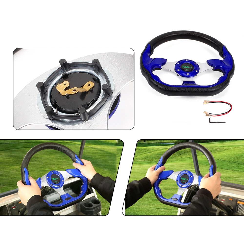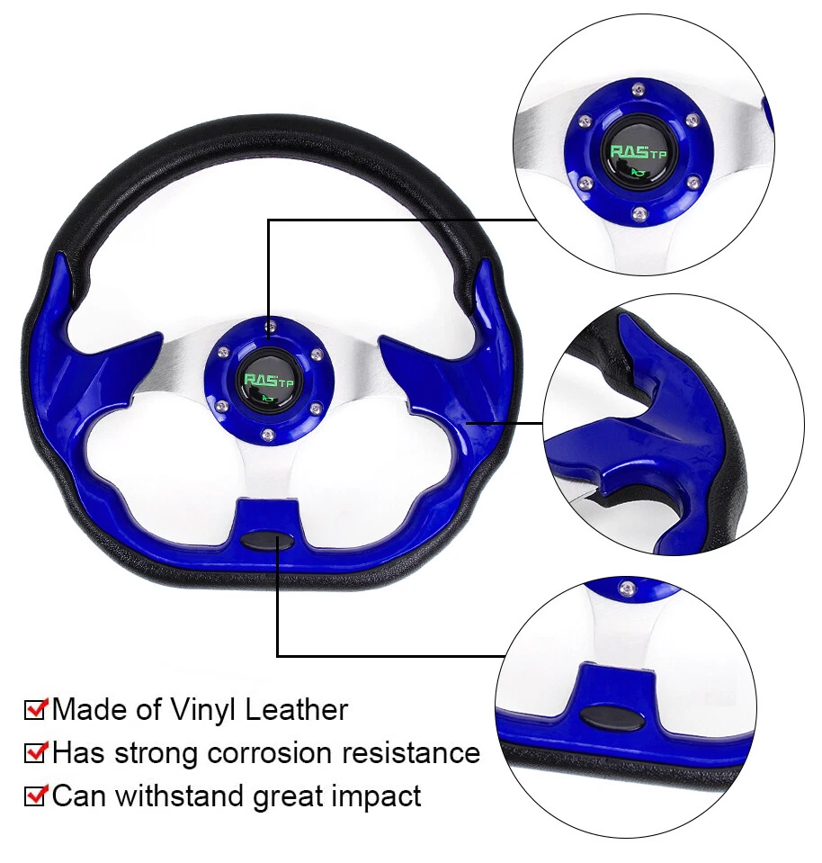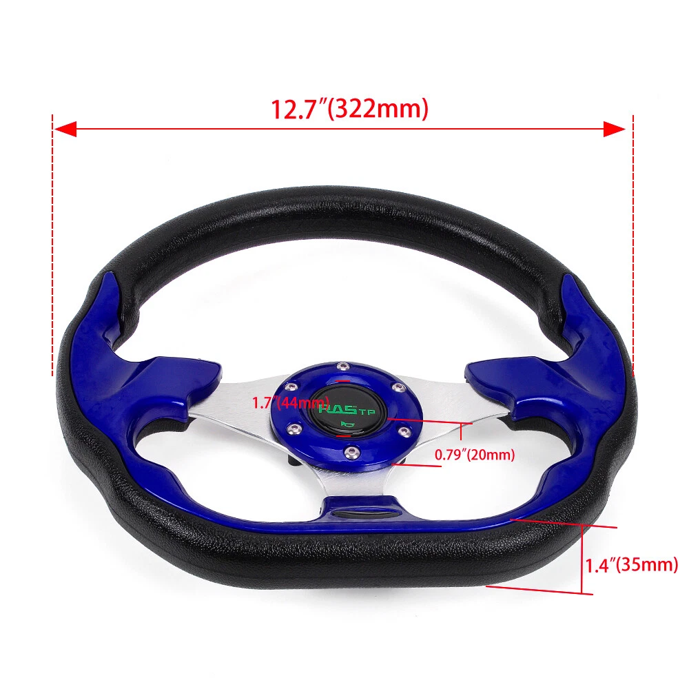 steering wheel Racing 14Inch Deep Dish Alum Leather Drifting Steering Wheel Modification Blue BUY NOW Red 13.5 in 350mm Suede Leather Steering Wheel 93m Deep Dish Drifting Racing Car BUY NOW Universal Racing Car Steering Wheel 345mm Suede Leather Stitch Deep Dish Sport BUY NOW US 13" 320mm Steering Wheel Universal Drifting Racing Sport Lightweight Gold BUY NOW 13" 320mm Steering Wheel Universal Drifting Racing Sport Lightweight Blue BUY NOW US 13" 320mm Steering Wheel Universal Drifting Racing Sport Lightweight Black BUY NOW Universal 14" 340mm Drifting Racing Steering Wheel 9.5cm Deep Dish US STOCK BUY NOW 13.5" 340mm Drifting Racing Steering Wheel Aluminum 6cm Deep Dish Racing BUY NOW 14inch 350mm Racing Steering Wheel Hand 9.5cm Dish Suede Leather BUY NOW US Gray Aluminum 13.6" 9.5cm Deep Dish Universal Drifting Racing Steering Wheel BUY NOW Red Universal Drifting Racing Steering Wheel 340mm Aluminum 6cm Deep Dish BUY NOW Gold Racing Sport 13"Deep Dish Leather 6 Bolt Steering Wheel with Horn Button US BUY NOW 13.4" 340mm Deep Dish Leather 6 Bolt JDM Sport Racing Steering Wheel with Horn BUY NOW Red 13.4" Bolt Steering Wheel Sport Racing 340mm Deep Dish with Horn Button BUY NOW US 13" 320mm Universal Drifting Racing Steering Wheel Aluminum 6 Bolt Black BUY NOW US Deep Dish Drifting Sport Steering Wheel Aluminum Surface Racing 13.5" Red BUY NOW 6 Hole Aluminum 13.6" Drifting Racing Steering Wheel +Quick Release Adapter US BUY NOW US 6 Hole Aluminum 13.6" Drifting Racing Steering Wheel +Quick Release Adapter BUY NOW 13.6" 9.5cm Deep Dish Universal Drifting Racing Steering Wheel Aluminum Gray BUY NOW Golf Cart 13" Steering Wheel Multiple Colors Or Hub Adapter EZGO/Yamaha/Club Car BUY NOW 13" 320mm Steering Wheel Universal Drifting Racing Sport Lightweight Blue US BUY NOW 13" 340mm Universal Drifting Racing Steering Wheel Aluminum 6 Bolt Black BUY NOW 13" 322mm Golf Cart Steering Wheel For Club Car Precedent Golf Cart BUY NOW US Universal Aluminum 9.5cm Deep Dish Drifting Racing Steering Wheel 13.6" 345mm BUY NOW US Gold Racing Sport 13”Deep Dish Leather 6 Bolt Steering Wheel with Horn Button BUY NOW Golf Cart Steering Wheel 13 inch For Golf Cart EZGO/Club Car/Yamaha Mahogany BUY NOW Universal 13'' 320mm Racing Flat Drift Sport Leather Steering Wheel + Horn BUY NOW 13" Universal Drifting Racing Steering Wheel Aluminum 6 Bolt Black US BUY NOW 13.5" Blue Aluminum RASTP Deep Dish Drifting Sport Steering Wheel Racing Car US BUY NOW US 13"6 Bolt Universal Drifting Racing Steering Wheel & Horn Quick Release Black BUY NOW Universal Golf Cart Steering Wheel For Golf cart EZGO/Club Car/Yamaha Enhanced overall appearance over the stock golf cart steering wheel. Must be installed with Proper Adapter (Required and sold separately). The unique design provides a nice touch and feels great in your hands. Taking your evening cruise to the next level. 13-inch diameter, Fits for EZGO, Club Car and Yamaha This steering wheel Without adapter. Must be installed with Proper Adapter ( Required and Not included) Color:B lue Material: Aluminum Size:13 inch/320mm Package: 1 X Steering Wheel Application: Universal Fits 6-Hole Adapters NOTE: All items are Brand New unless stated otherwise on the listing. We sell DIY (Do It Yourself) . We take no responsibility in teaching you how to install. Professional installation is strongly recommended. Shipping Information We will only ship this item to buyers by Normal Mail, please confirm your address is correct, and if you want to change the delivery address, just feel free to contact us when you purchase. Usually, we will ship the orders out and upload the tracking number within 1-2 business days(Monday to Friday from 8:30am-5:30pm) after you complete the payment. NOTE: If there is any CUSTOM DUTIES, LOCATL TAXES OR ANY OTHER IMPORTATION FEES, buyer will bear these costs. Each country has different customs tax threshold, so you need know your country's tax policy. Payment Information We will only accept PayPal payment. Please pay using PayPal ONLY within 7 days from the date of transaction be made. Secured credit card payment through PayPal. Return Policy 100% Satisfaction Guarantee, "Period" !PLEASE CONTACT us with ANY Concerns. We offer not less than 30 days for return and refund policies. If you receive the items that have any quality problems or damaged, please feel free to let us know and provide the photos, we will resend it or refund you. But we will not accept the return if the item damaged by the buyer’s operational errors.Return shipping cost is to be paid by the Buyer. Contact Us For any reason you want to contact us,We aim at satisfying every visitor, no matter what kind of situation you meet with, we will be right here to serve you. Please contact our team. If you are happy with the transaction with us, leaving us an ALL-5-STAR positive feedback would be greatly appreciated. Have a good shopping.