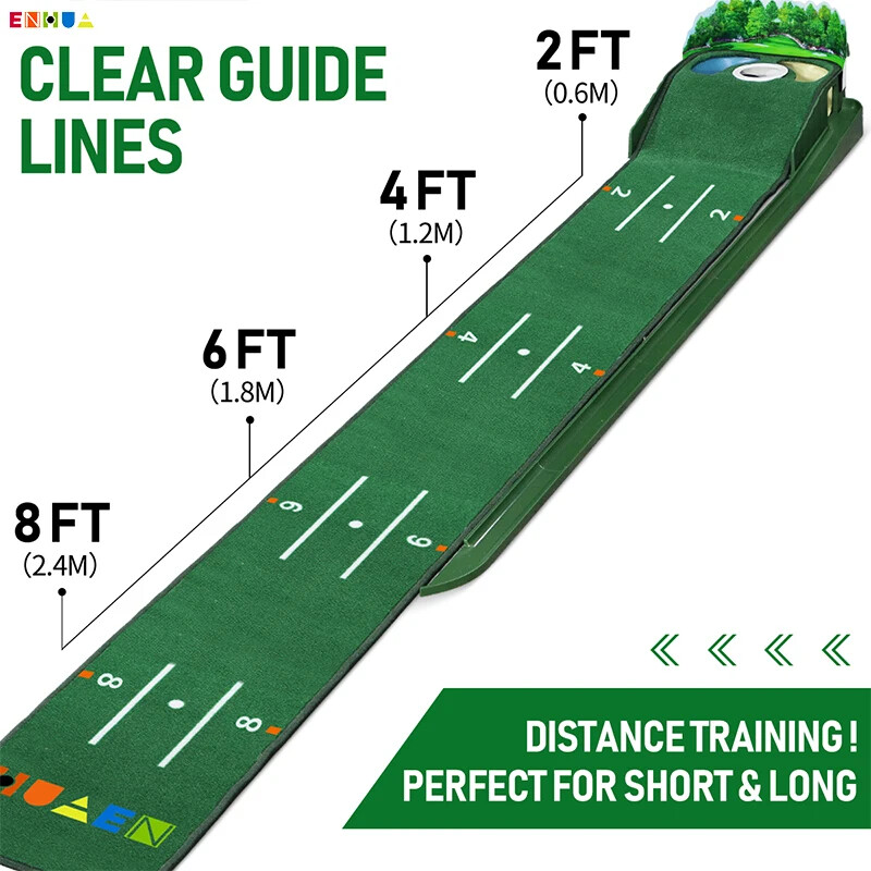 New Golf Putting Mat Plastic Training Tool Driving Trainer Putter Practice Pad Chipping Hitting Carpet Green 8FT