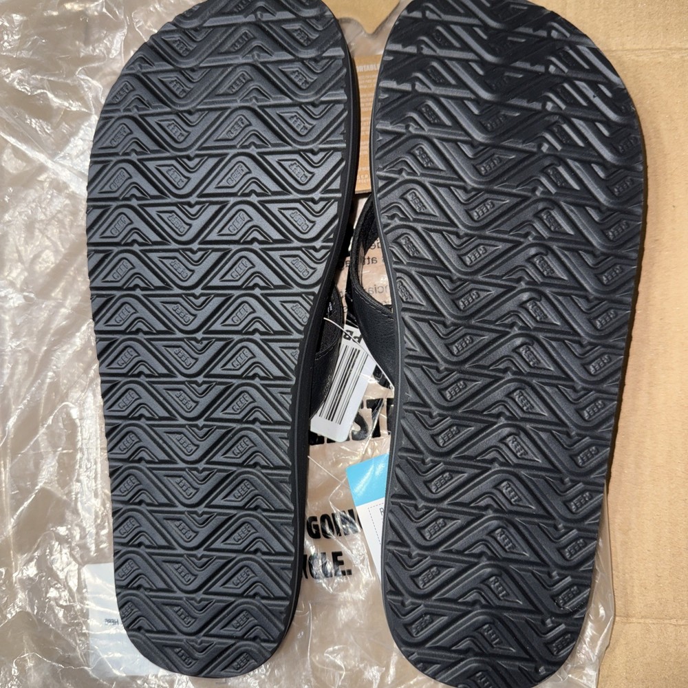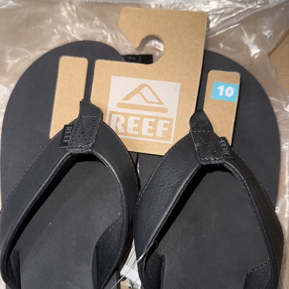The Good_Reef men's Twinpin Flip Flop in Black/Black, size 10 US, is a stylish and comfortable sandal perfect for outdoor occasions. With a flexible plastic sole and leather lining, these flip flops provide support and durability. The flip-flop design with a thong strap and open toe offers a casual and fashionable look, making them a versatile choice for everyday wear. Imported by Reef, these sandals are designed for men and come in a sealed bag packaging. Perfect for those who enjoy a fashion casual lifestyle, these flip flops are a solid black color with a sleek design.