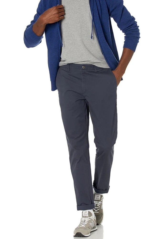 Elevate your wardrobe with these stylish and functional chino pants from Goodthreads. The navy color and solid pattern make them a versatile addition to any outfit, while the slim-fit and flat front design give them a modern, city-preppy vibe. These pants feature a zip and button closure, as well as slash pockets for added convenience. The fabric type is canvas, consisting of 97% cotton and 3% elastane, which provides both comfort and stretch. They are perfect for the transitional seasons of summer, fall, and spring, and can be dressed up or down for casual or workwear occasions.