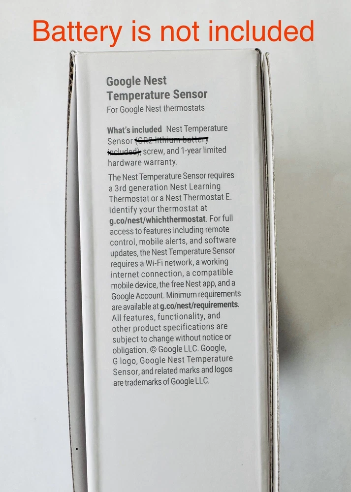Google Nest Temperature Sensor for 3rd Generation Nest learning thermostats or E models. Unsure if works with any other models. Requires a CR2 battery which is NOT included. Used for multi story home - thermostat was downstairs and sensor on second floor to ensure consistent temp. Nest wasn’t compatible with my old oil burning furnace, so this was barely used.