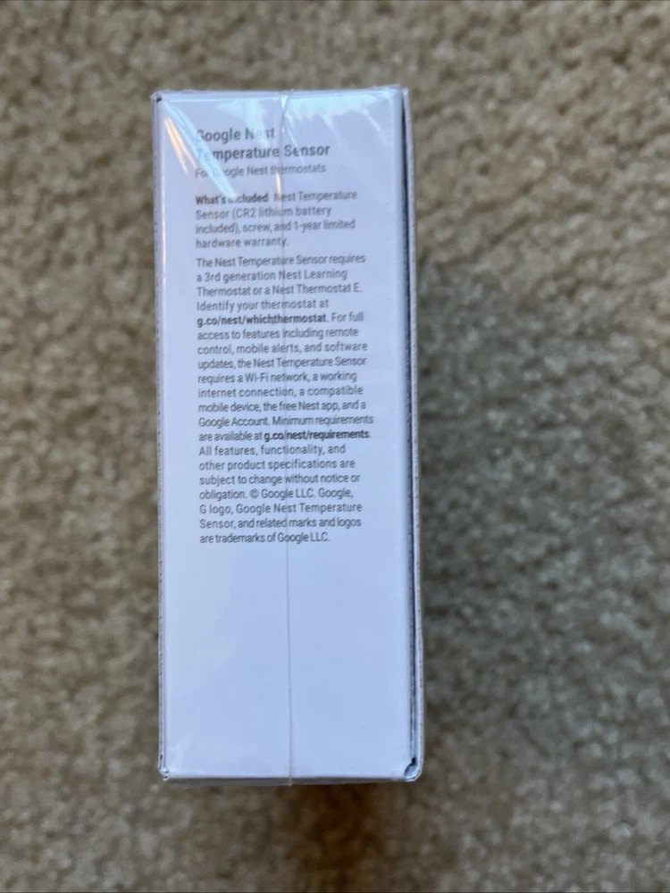 Google Nest Temperature Sensor - White NEW IN SEALED BOX This is a new in box Google Nest Temperature Sensor. It is made for Google Nest Thermostats. Please look at my other listings as well. I have an assortment of different items listed. Thank you! Please follow me to see my newest items. I am always adding items!