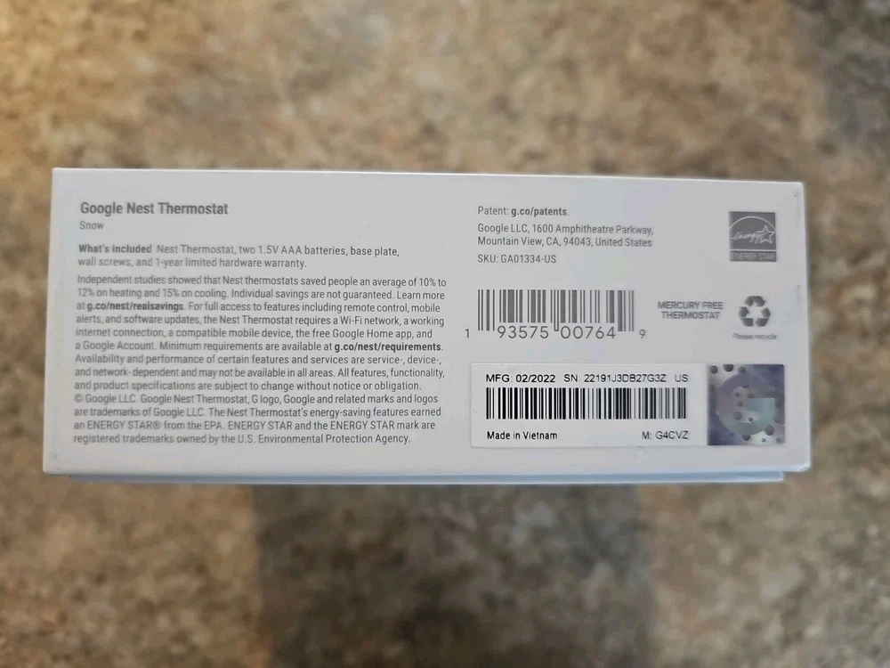 Google Nest Thermostat G4CVZ Open Box Unused. Shipped with USPS Ground Advantage.