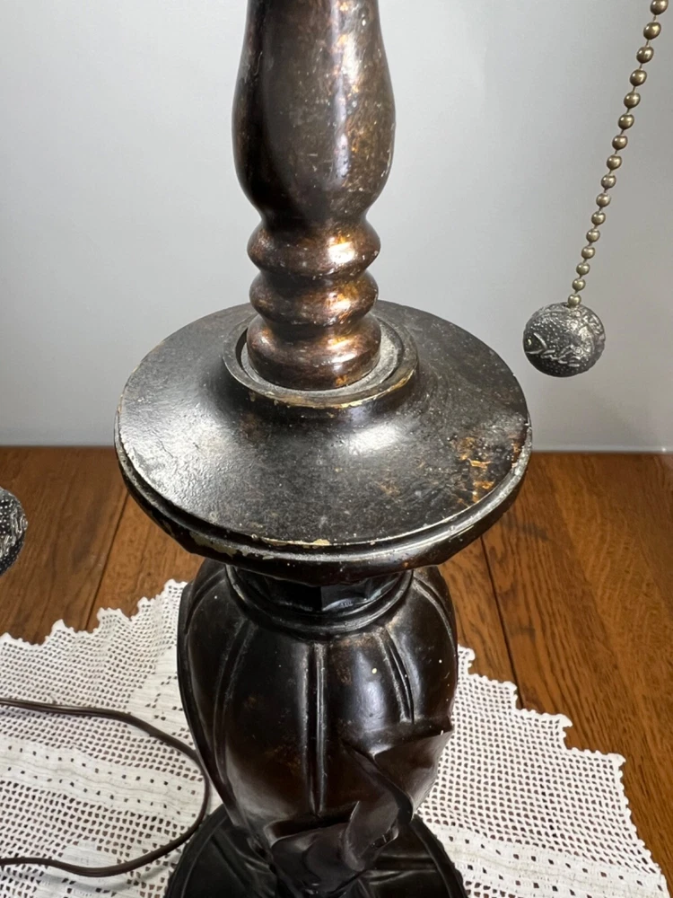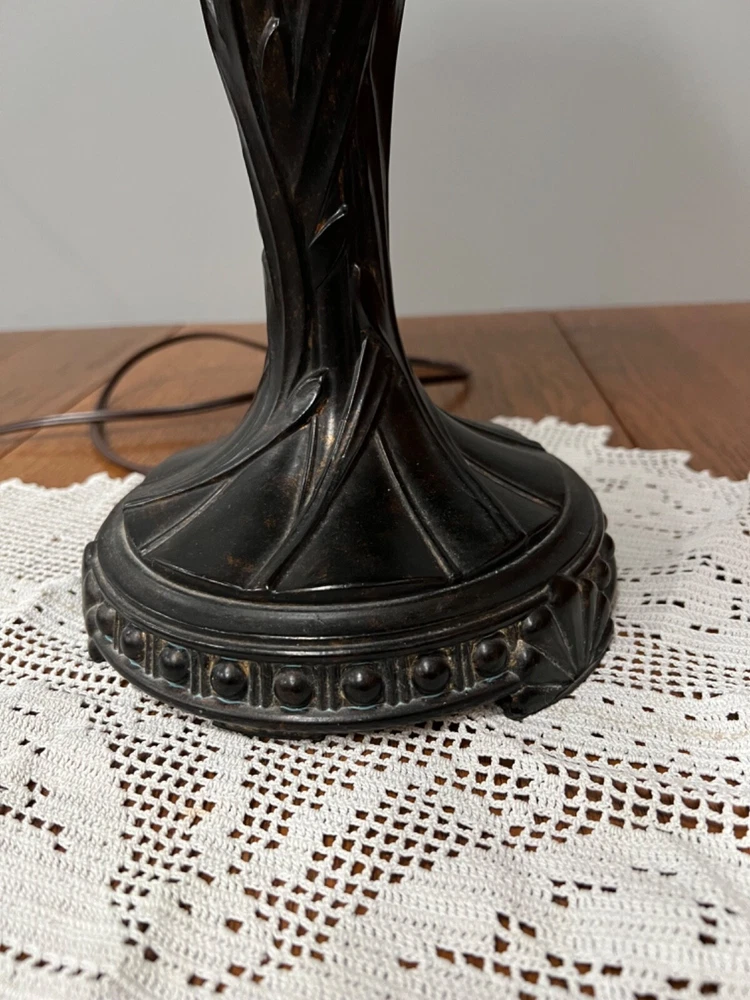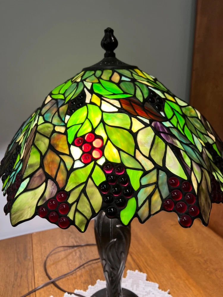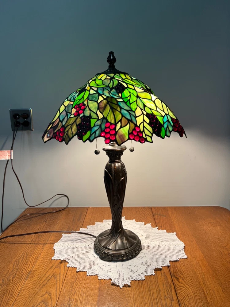 Gorgeous Dale Tiffany Stain Glass Lamp, Grape Vine Shade With Over 100 Jewels- #B Beautiful Lamp, The Pictures Don't Do It Justice. Excellent Working Condition, Very Heavy. There Is Some Chipping Of The Bronze Finish Up Where The Chain Ball Rubbed On The Lamp-See Last Photo Measures Approx 28"H Shade Approx 19"W x 10"D Bulbs not included We have 2 of these lamps - check out of other listings if interested in both Please see photos for details and condition ***Most items ship within 2-3 business days*** **** I ONLY SHIP WITHIN THE LOWER 48 OF UNITED STATES **** Please note: Shipping charge posted to this listing is based on shipping within the lower 48 of United States – if you live outside of the continental US and are interested in one of my items, please message me prior to purchasing the item so that I can provide you with accurate shipping charges. The only exception would be if you qualify for eBay’s international shipping that first processes through a domestic hub. Failure to do so could result in your purchase being cancelled.
