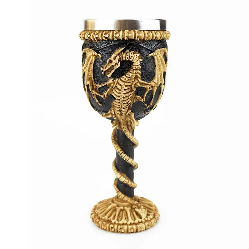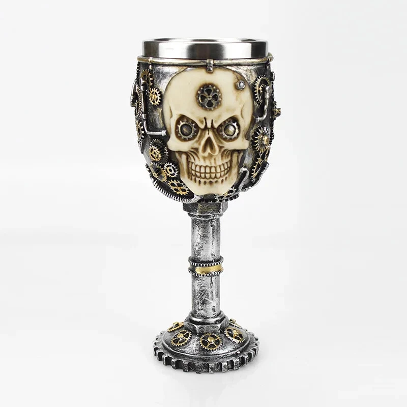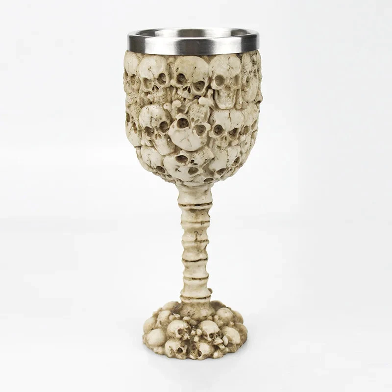 Product Description: Unleash your dark side with this Gothic 3D Viking Skull Wine Goblet , a striking piece designed for those who appreciate unique and bold drinkware. Crafted from high-quality resin with a stainless steel inner liner , this goblet features intricate details such as a dragon claw grip, skeleton spine stem, and Viking skull motifs . Whether you’re sipping wine, whiskey, mead, or ale, this goblet adds a medieval, gothic touch to any occasion. Perfect for collectors, themed parties, and as a statement piece for your home bar. Why You'll Love It: Intricate 3D Design – Features a realistic Viking skull, dragon claw, and skeleton spine details. Durable Construction – Made from high-quality resin with a stainless steel inner lining. Versatile Use – Ideal for wine, whiskey, ale, mead, or any beverage of choice. Perfect Gift for Collectors – A must-have for gothic, Viking, and medieval enthusiasts. Easy to Clean – Stainless steel insert ensures durability and effortless maintenance. Make every sip legendary with this Gothic Viking Skull Wine Goblet!