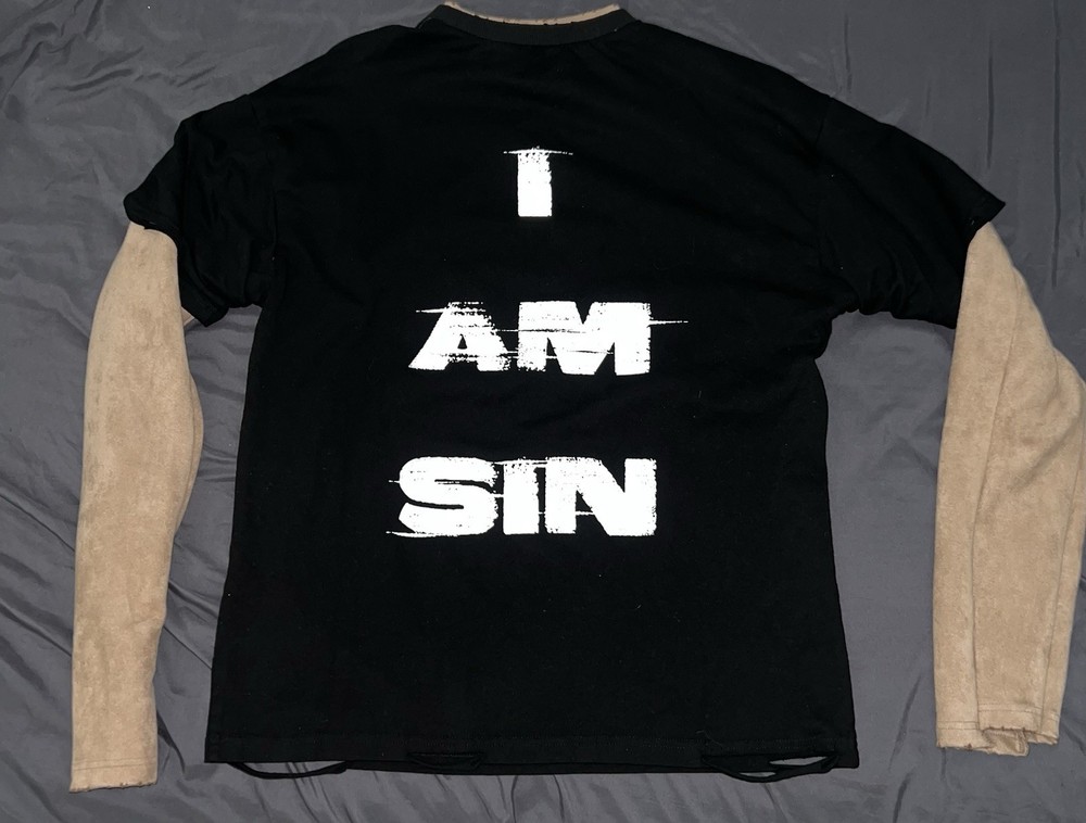 Gothic Graphic Print Black Beige Men's Cotton Long Sleeve Crew Neck T-Shirt
