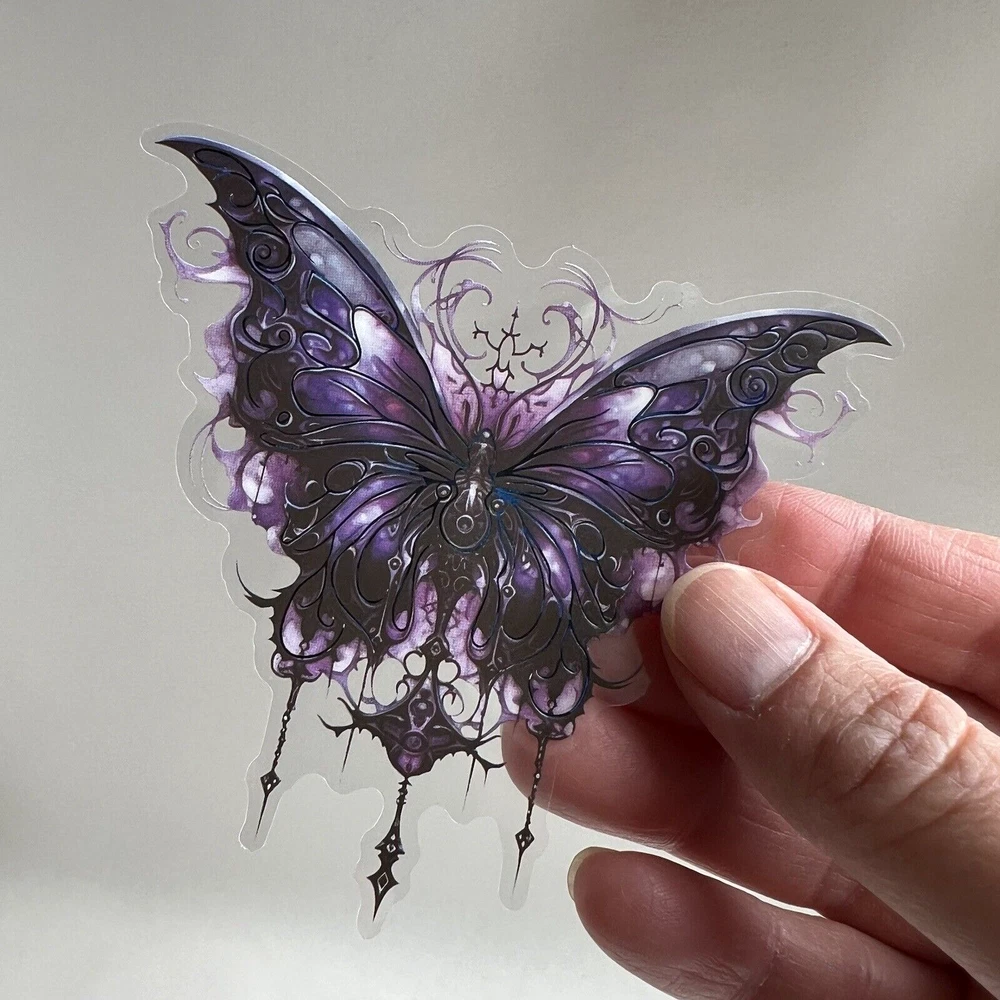 Gothic Butterfly stickers. Purple and blue. The black lines on the wings are slightly embossed. 12 stickers. 6 designs x 2. These are large flake stickers made out of PET (images printed on a clear flexible plastic with a clear peel off backing.) The sticker in the last photo measures approx. 3 5/8 x 3 1/4 inches. I have more stickers, washi tape and paper for sale. I do combine shipping. Please put all the items you want to purchase in ONE cart and then pay. I will refund you the difference in shipping after shipping label is printed. Let me know if you have any questions through eBay messaging. Thank you for stopping by!