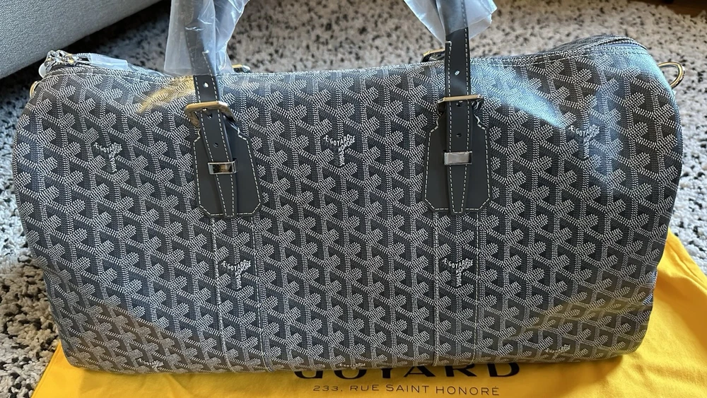 1. This duffle is pure luxury—the grey Goyard canvas is sleek and durable, with impeccable craftsmanship straight from Paris. The size is perfect for weekend trips, and the never-used condition makes it a rare find. The iconic pattern turns heads, and the quality feels worth every penny. A must-have for any Goyard lover!