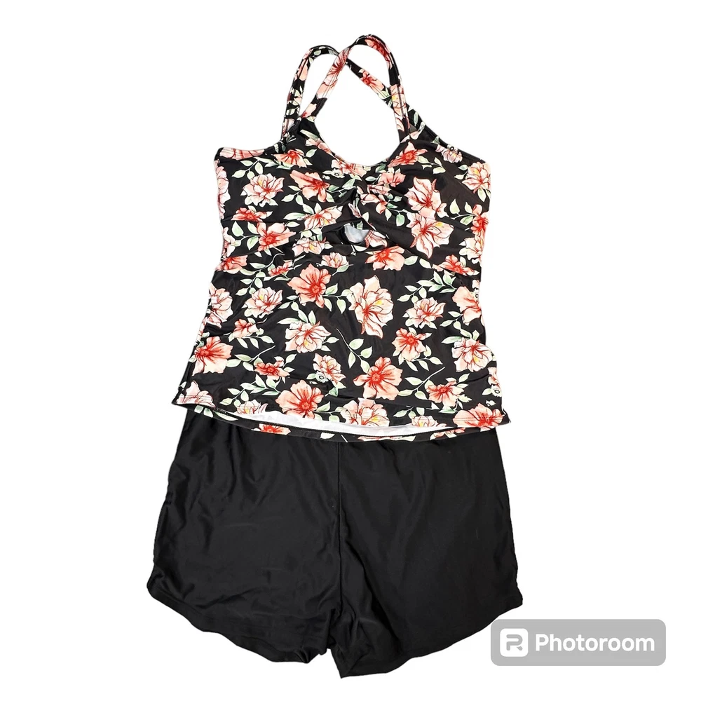 Grace Karin Tankini Womens 2XL Black Floral 2 Piece SwimSuit Shorts Crisscross Gender: Women's Brand: Grace Karin Size: 2XL or XXL Color: Black with Orange and Green Floral Pattern Two Pieces Tankini Top Adjustable Crisscross Straps Removable Bra Pads Ruched Chest with Cutout Boy Shorts Polyester Blend Made in China Approximate flat lay measurements: 17.5" Under the Bust 16.5" Waist New with Tags (NWT) *Colors may vary depending on lighting and individual viewing devices Offers Welcomed Bundle Discounts Available Fast Shipping Thank you for shopping my closet! Location A - 1766 Summer, Beach, Lake, Pool, Poolside, Vacation, Swimming, Swimmer, Swim, Cruise, Resort, Spring Break, Swimsuit, Swimwear, Casual, Preppy, Two Piece, Two-Piece, Plus, Plus Size, Womens, Women's, Tankini, Tank Top, boy shorts