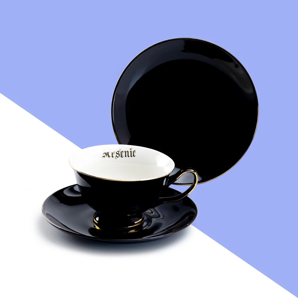 Each set includes - 1 cup with 1 saucer Cup Dimension: 2.75” Height x 5” Width x 4" Depth Capacity - 7oz Saucer Diameter: 6" Dishwasher Safe Hand wash recommended Not microwave safe due to gold trim