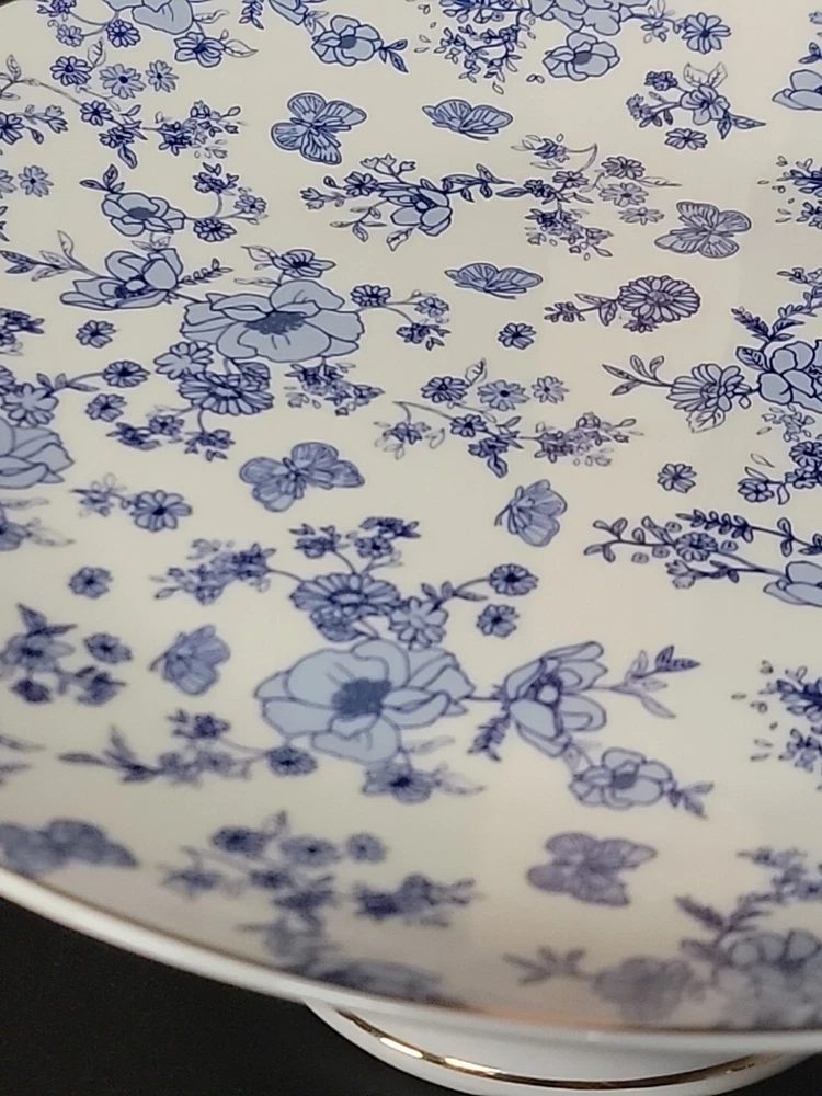 Grace Teaware Cake Stand Blue Floral & Butterfly New with no issues. Blue toile with hold highlights around base and plate. Questions Are Always Welcome! I ship no later than the next business day. I leave positive feedback as soon as payment is made and ask that you please return the courtesy when you receive your shipment. If there is ever an issue please let me know ASAP. Thanks for looking!