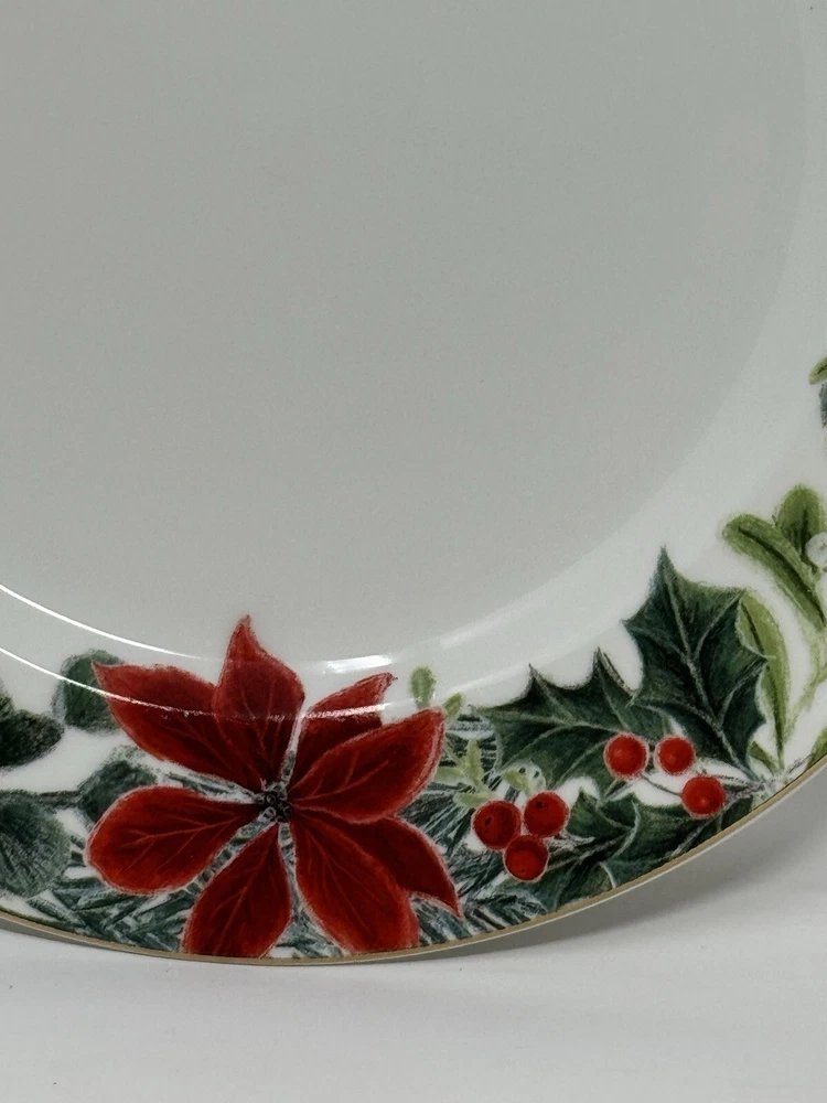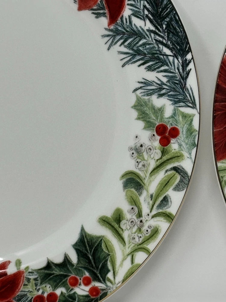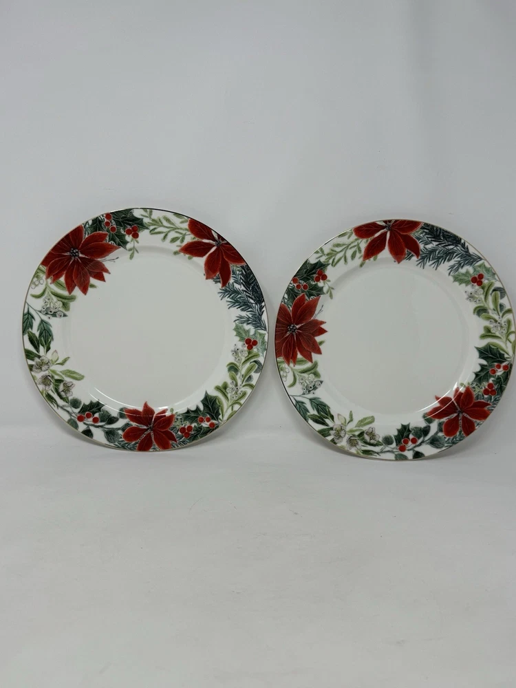 Add a festive touch to your dining table with this set of two Grace Teaware Christmas Poinsettia dinner plates. These round plates feature a beautiful floral pattern with holly berries, poinsettia, and a shiny finish. The plates are made of high-quality porcelain and are dishwasher safe for easy cleaning. Measuring 10.5 inches in length and width, these plates are perfect for serving your favorite holiday dishes to your loved ones. Whether you're hosting a Christmas dinner party or simply enjoying a meal at home, these plates are sure to impress. Don't miss out on this original and hard-to-find set. brand new release for 2024! wow they are beautiful! perfect for the best season!
