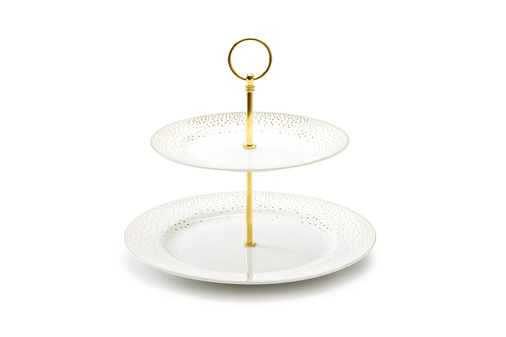 Grace Teaware Gold Dots Fine Porcelain 2-Tier Server