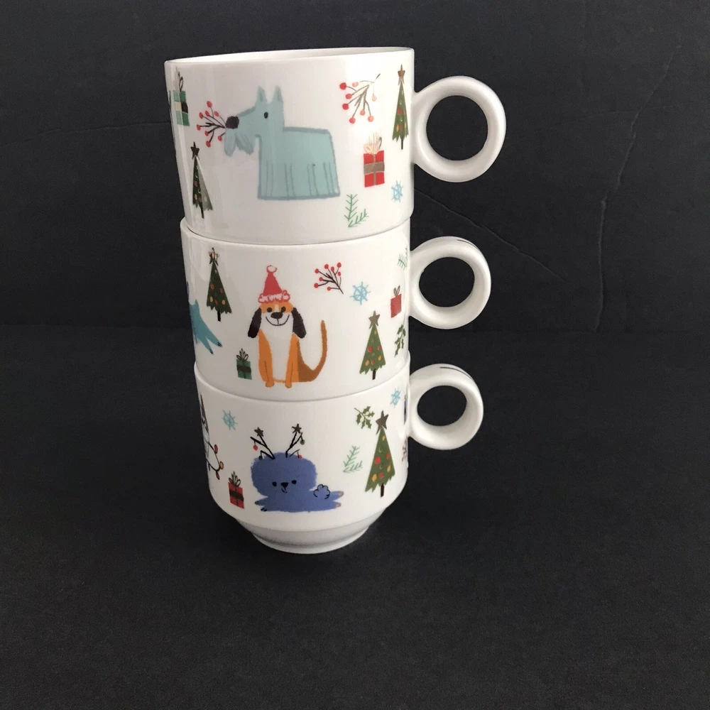 This set of 3 Grace Teaware porcelain coffee mugs will be the perfect addition to your holiday decor. The festive dog pattern and multicolor design make them a great choice for Christmas morning coffee or tea. The mugs are made of high-quality porcelain and are stackable for easy storage. Whether you're sipping on hot cocoa by the fire or enjoying a cup of tea with friends and family, these mugs are a charming and functional choice.