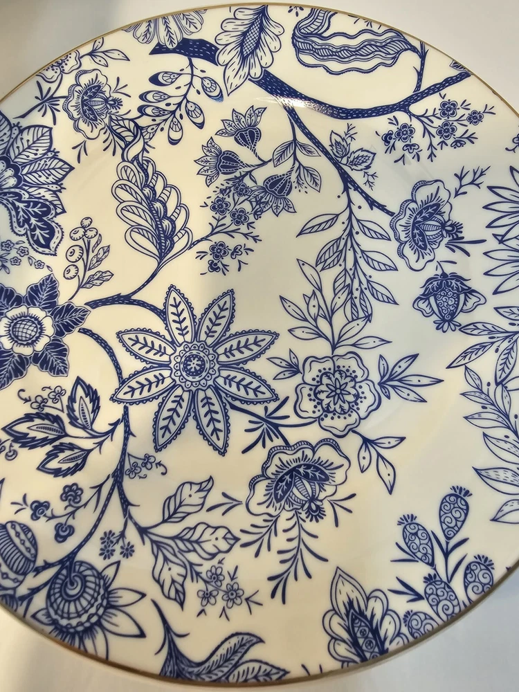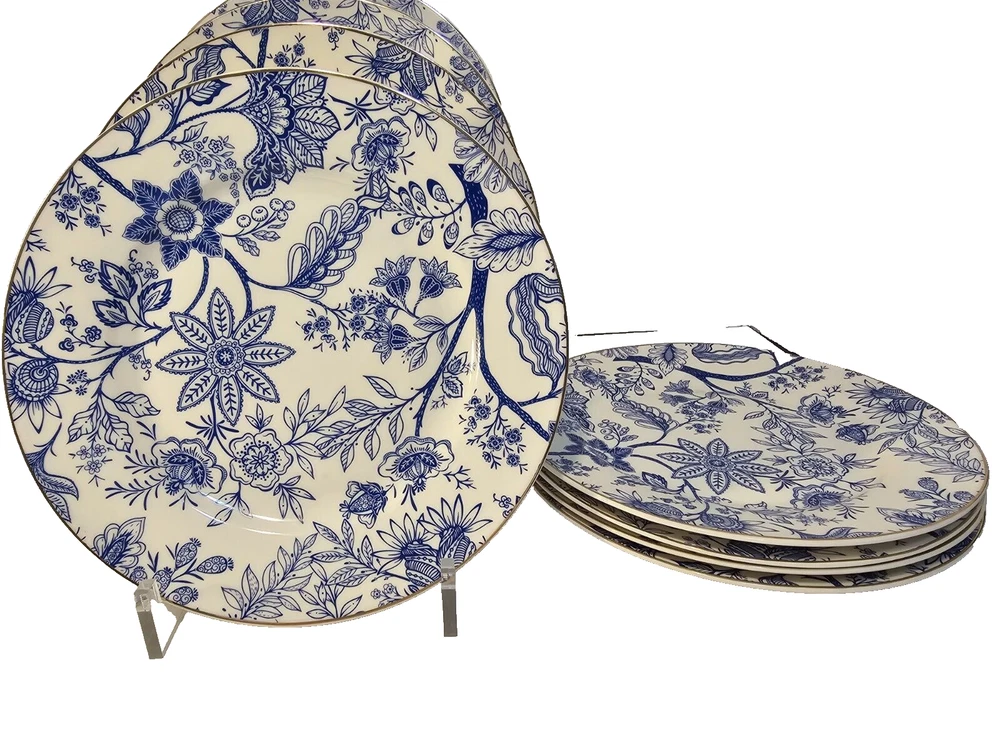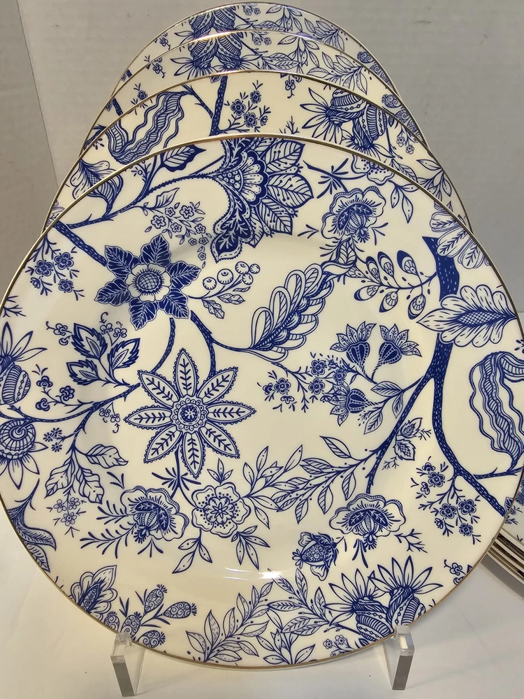 Grace Teaware Beautiful Blue and White Salad Dessert Side Plates. They are 8" diameter and in very good pre owned condition. No chips, cracks or crazing. Lovely gold trim.