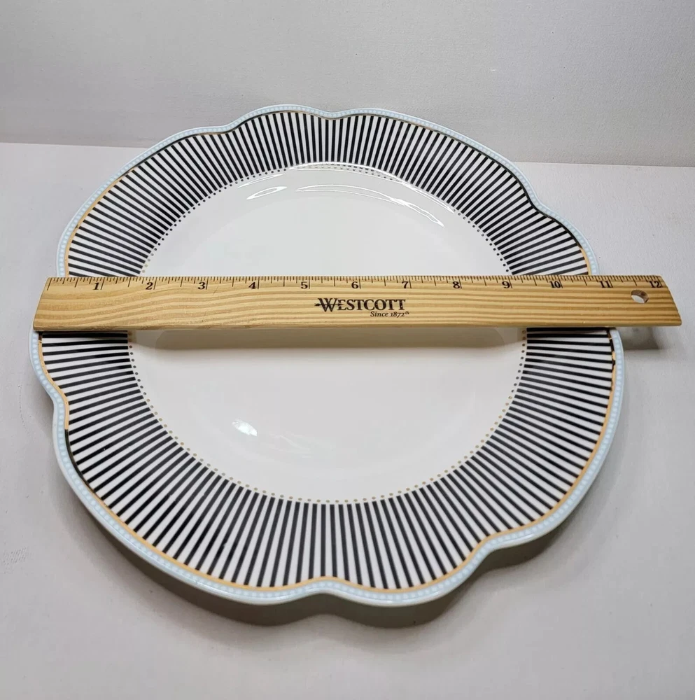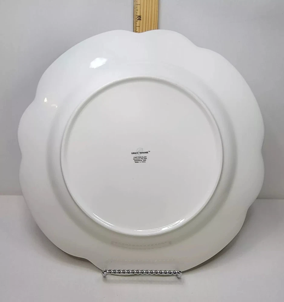 This elegant Grace Teaware dinner plate is the perfect addition to any collection. The plate features a beautiful scalloped, dotted, and striped pattern in shades of gray, light blue, and gold, making it suitable for all occasions. Measuring 11.5 inches in width, the plate is made of high-quality porcelain and is suitable for hot or cold beverages. The plate is an original Grace Teaware product and is not a licensed reproduction. It is perfect for contemporary style settings and is unisex. The plate is made in China and comes with a set that includes one dinner plate. This item is ideal for collectors, and its unique design makes it a must-have in any kitchen or dining room. We do combine shipping on orders placed within the same day. In our effort to ship quickly, once USPS creates the shipping label, we cannot offer bundle discounts. Bundle/Shipping refunds are processed after order is packed, weighed and labeled for shipping. Please browse our store to see original photos of in-stock items. Few stock pictures (unless showing mystery options or print variations) ensuring you we actually own the merchandise we have listed. We do not list pre-orders or drop-ship items and are not responsible for the actions of other sellers who 'borrow' our photos. We use manufacturer size specifications in our listings. Please make use of our trusty wooden ruler (in the background of most listing photos) for size/scale comparisons. This ruler does not come with your order. Condition is " Excellent Used Condition, No Chips, Crazing or Cracks " from a pet / smoke-free facility. After being photographed, inventory is secured in covered containers to safeguard cleanliness. We ship exclusively USPS Ground Advantage daily (except Sunday and Federal Holidays) but cannot guarantee specific delivery dates . Most Items are packed in poly bags and shipped in bubble mailers. If you do not receive mail at your address, please do not buy from us. Your package label is created directly from your eBay profile information, please ensure that this is correct before buying. We cannot change an address on a completed transaction, as it violates our agreement with eBay. WARNING: We are not responsible for late, undeliverable or redirected mail. We do not ship to PO Boxes and are not responsible for undeliverable address issues. Packages addressed to usernames, and addresses altered to bypass our delivery policies, are being returned. USPS utilizes GPS tracking on their scanners to indicate specifically where packages are delivered. All sales are final. No cancellations (we ship too quickly) or returns due to hygienic concerns. We want you to be happy with our service and ask that you reach out to us if you encounter an issue. We utilize eBay's automatic feedback tool. Positive feedback is delightful (and reciprocated) but we will not trouble a buyer for feedback . Please allow yourself time for your shipment to arrive. We cannot guarantee delivery dates . Any estimated delivery date listed on eBay, is eBay's best guess, and not always an accurate estimated time of arrival. Please check your tracking number on the USPS website for the most current shipping updates.