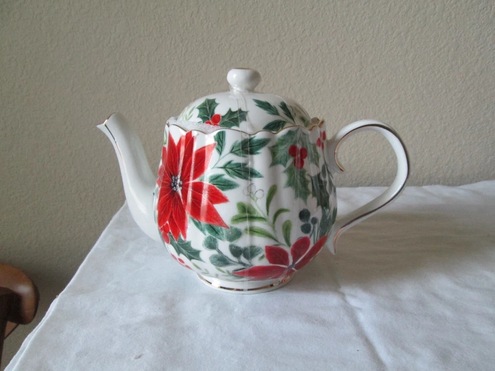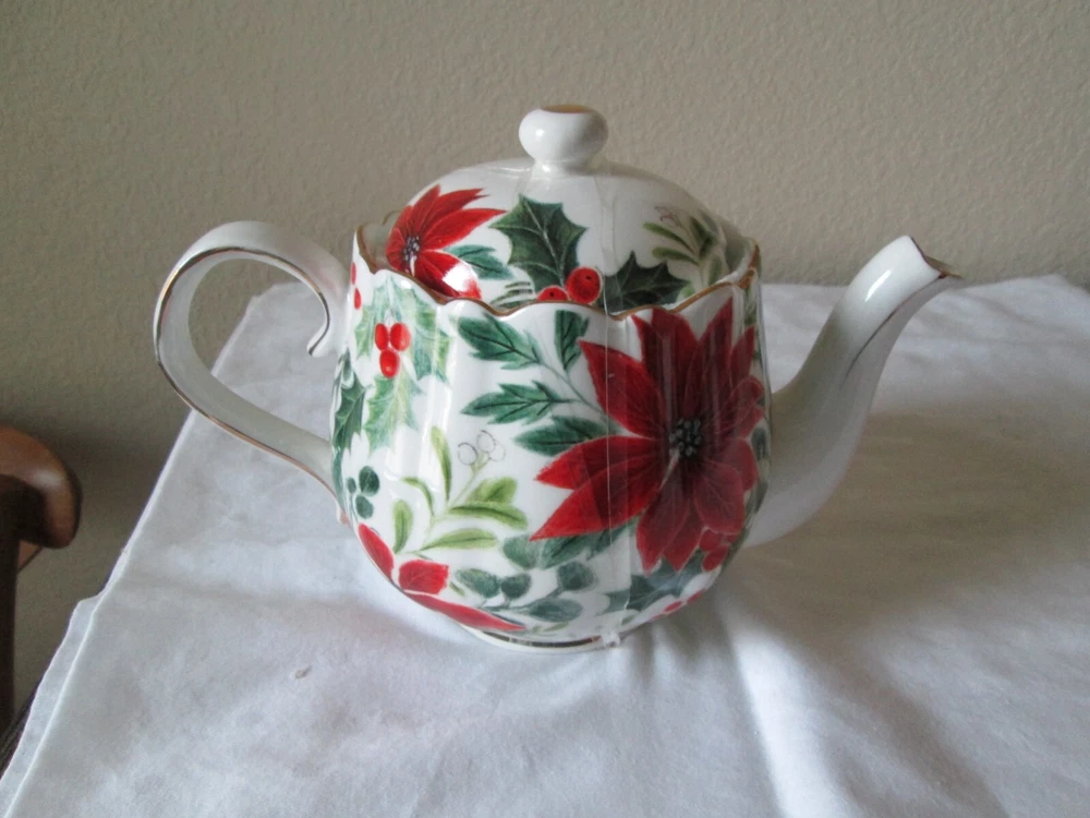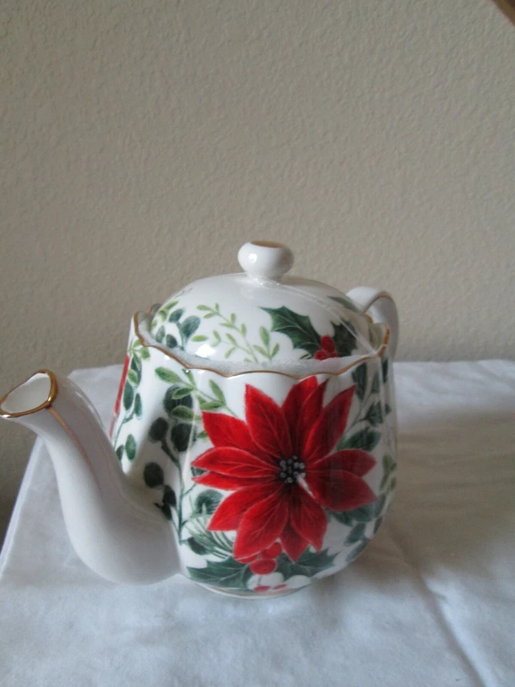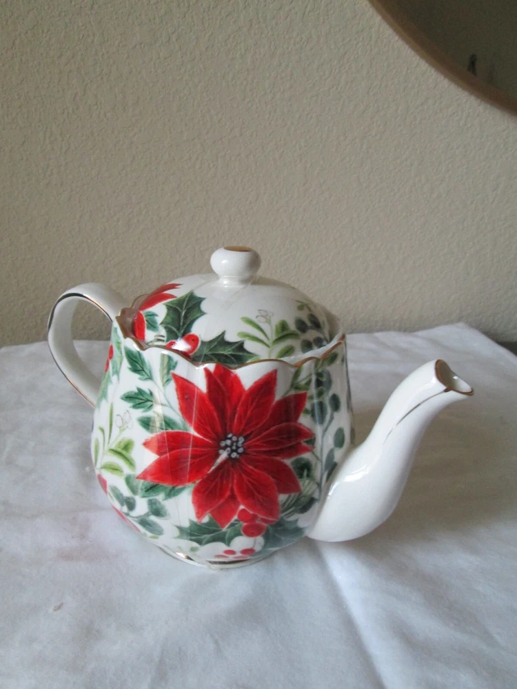 Get into the festive spirit with this beautiful Grace's Teaware Christmas Teapot. The intricate design features the classic Christmas Poinsettia in vibrant red and multicolor, making it the perfect addition to your tea set collection. Crafted from high-quality porcelain, this large teapot is ideal for serving your favorite tea to family and friends during the holiday season. With its traditional Christmas style and graceful design, this teapot is sure to impress your guests and bring a touch of festive cheer to your home. Made in China, this collectible teapot is a must-have for any tea lover or collector. Add a touch of elegance to your tea time with Grace's Teaware Christmas Teapot.