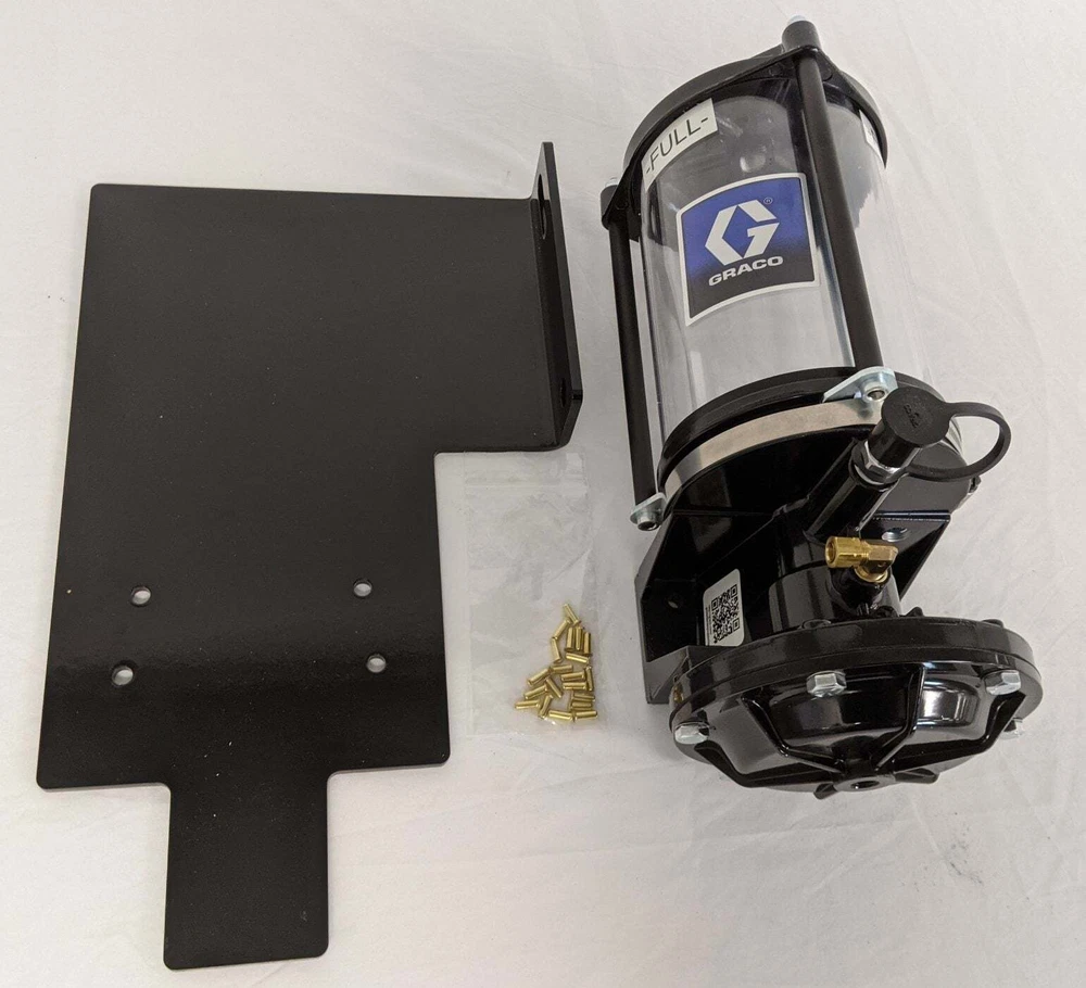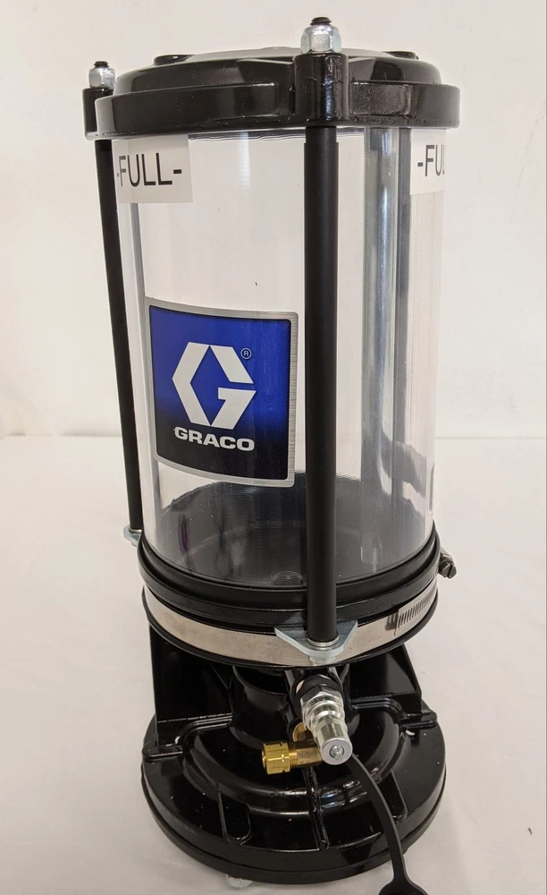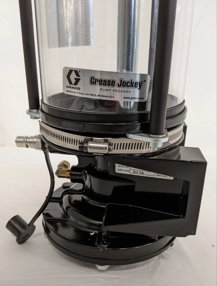 Graco 6lb Automatic Chassis Lubricator Grease Jockey Pump - P/N 563589 Graco 6lb Automatic Chassis Lubricator Grease Jockey Pump - P/N 563589 Graco 6lb Automatic Chassis Lubricator Grease Jockey Pump Does Not Include Mounting Hardware - Only Includes Items Shown In Photos Pump - GJ, 6 LB, Plastic Reservoir, Automatic Chassis Lubricator P/N: GRU 563589 / 25R519 Max. Working Pressure: 1350 psi Grease Reservoir Capacity: 6 lbs Air Inlet Port Thread Size: 1/4 NPT Inch Center To Center Edge Mounting Hole Length: Approx. 5" Center To Center Middle Mounting Hole Length: Approx. 4.50" Overall Height: Approx. 16.50" Overall Length: Approx. 8.50" Material: Aluminum Black Painted Finish Cross Reference P/Ns: SMQ 563589, 906033, Freightliner/Daimler TRK SMQ550 001 050, Lubriquip/Graco 563589 550 001 050, 550-001-050, 550001050, 563584, SMQ550 001 050, 563589 550 001 050, 550-001-050, 550001050, 563584 May Have Cosmetic Blemishes See Photos For More Details Just a Reminder: We do not have the means to cross-reference VINs; therefore, for part fit specifications, please contact your local dealer. Be sure to check out the rest of our store. We have a huge selection of discounted new and used truck parts. Shipping and Handling: All of our items have 1 (one) day handling time (Unless it is the weekend or a holiday). Ground shipments will be sent via UPS or USPS. Freight shipments will be sent via ESTES or XPO. We do offer faster shipping for an extra cost (Please contact us for faster shipments). Tracking numbers will be put into the listing after your item has been shipped. Payment: We accept Paypal as well as eBay payment options. Sales Tax will be charged to Indiana and whomever eBay requires to tax. We will accept credit cards, cash, and other payment options for local pickups. Returns: We accept returns up to 30 days after the item has been delivered to you (If it has been longer than 30 days a 15% restocking fee will be charged to returns or not accepted). Full money back on all returns as long as they come back in the condition they were sent. Buyer is to pay for return shipping unless we shipped you the incorrect item or if the item has been damaged through the shipment process. International Shipments: At this time we do not ship Internationally. FREE SHIPPING Fast and Free With Tracking Number!! Listing and template services provided by inkFrog