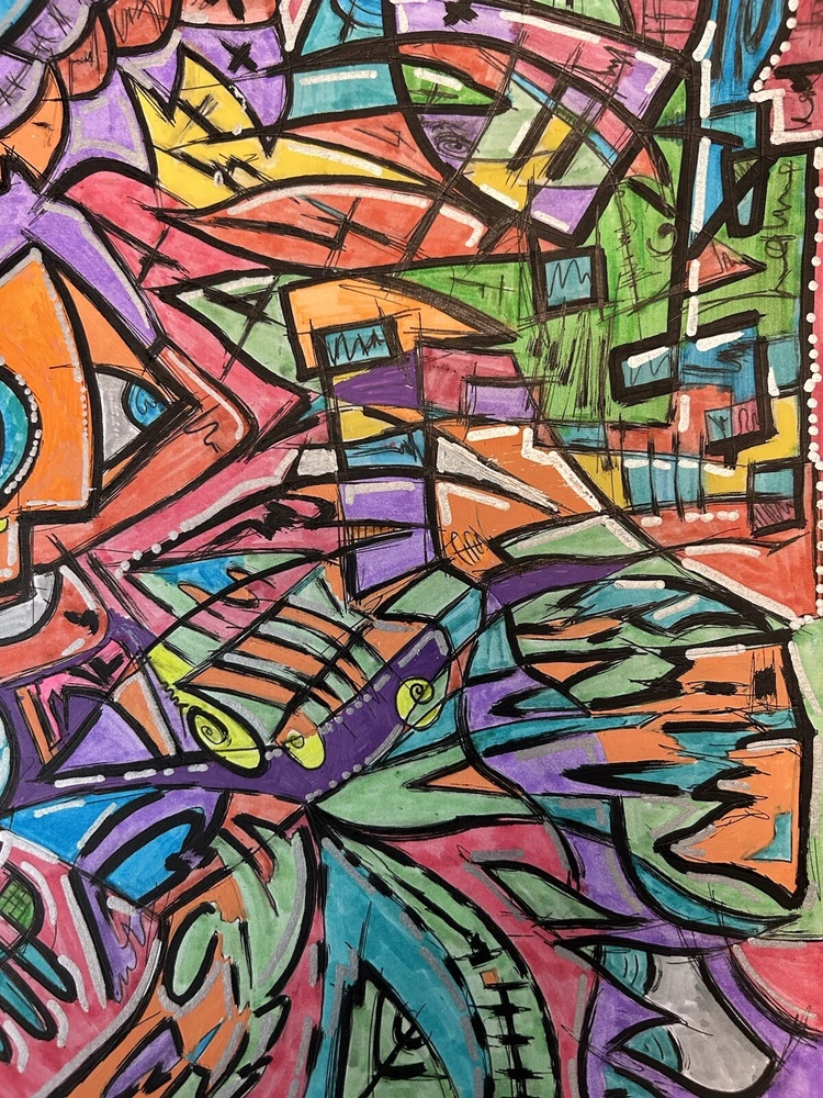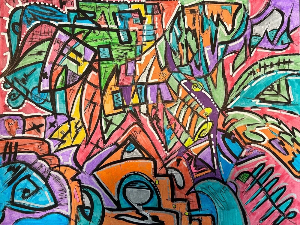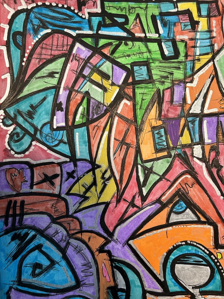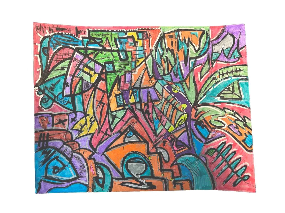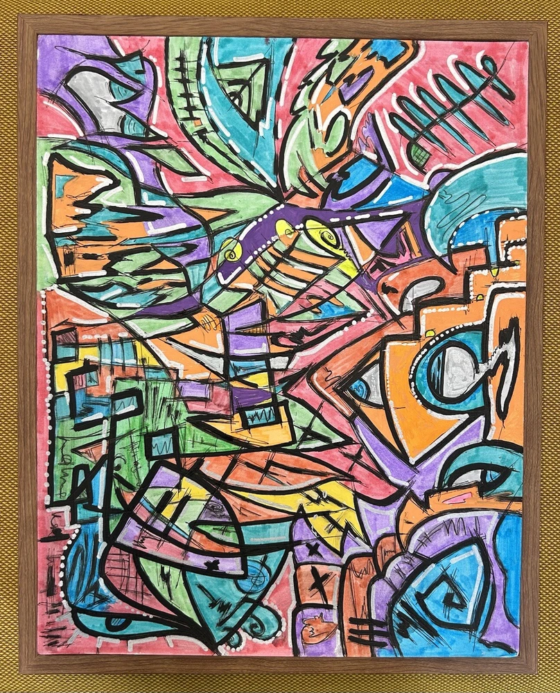 Original mixed media abstract art using Acrylic markers, oil pastel, markers and pen on Acid Free, Heavy Weight BRISTOL paper. Dimensions: 11 in. x 14 in. (27.9 x 35.6 cm) Paper weight: 100 lb. (270 g/m2) Unframed. One of a kind no duplicates. Shipping free for US buyers. International buyers will pay shipping and tax based on their location.