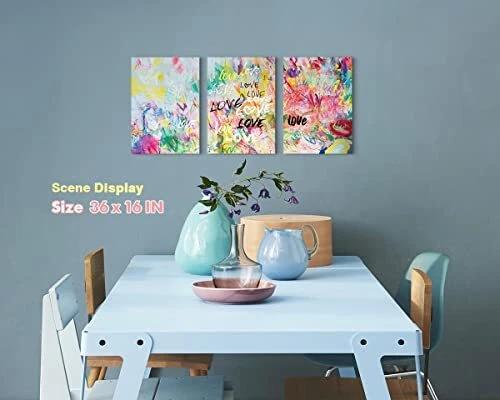 Graffiti Wall Art Street Pop Art Trendy Wall Decor Abstract Love home decor 2023 ⭐⭐⭐⭐⭐ Material Canvas Color Love pop art Style Graffiti Theme Abstract Room Type Bedroom About this item 💖LOVE WALL ART: 12’’W*16’’H*3panels, overall size 36’’W*16’’H. Coming with frame, installation accessories and instructions for easy hang. 💛ORGINAL DESIGN: The artist uses gorgeous and bright colors to express strong love, as if love will overflow the bondage of canvas. 💚PERFECT GIFT IDEAS: The love line art is perfect for decorating bedrooms, living rooms, dining rooms and bathrooms. It is also great as gifts for friends, lovers and family members. 💙WHY CHOOSE US: We use HD Giclee prints on premium canvas. Our paintings are not only maintaining the most vivid colors and details, but also waterproof, moisture-proof, do not fade. 💜About the color difference: Due to the display problem of the monitor, the actual color may be different from the online listing. Please understand. Graffiti Wall Art Street Pop Art Trendy Wall Decor Abstract Love home decor 2023 Contact us👇 We can be contacted at any time through eBay messages if you have any questions, comments or product requests. We will respond to you within very few hours and do our best to help you out! We encourage our customers to contact us with any questions or concerns! We'd like to be sure you are completely satisfied with your purchase. We would appreciate it if you leave a Positive Feedback that will give us lower seller fees and as a result lower sale price for you. Moreover, it encourages us to work harder and enhance the quality of the service. About us👇 Our team does various kinds of artworks.all of our artists have 4- 13 years of experience by doing home decoration related artworks. Payment👇 We accept all payment methods. Shipping👇 Valid tracking provide We ship to your confirmed eBay address. Please make sure your eBay address is correct before you pay. Item will be shipped within 3 business days when we received your payment. Please kindly note that the delivery time depends on the destination and other factors. Return Policy👇 All items are in brand new condition. If you are not satisfied with the item or the item is defective, please return it within 30 days for a replacement or money back. Thank you for shopping with the CREATIVE ARTIST. [The Best ⭐⭐⭐⭐⭐ Quality art supplier] Graffiti Wall Art Street Pop Art Trendy Wall Decor Abstract Love home decor 2023Graffiti Wall Art Street Pop Art Trendy Wall Decor Abstract Love home decor 2023